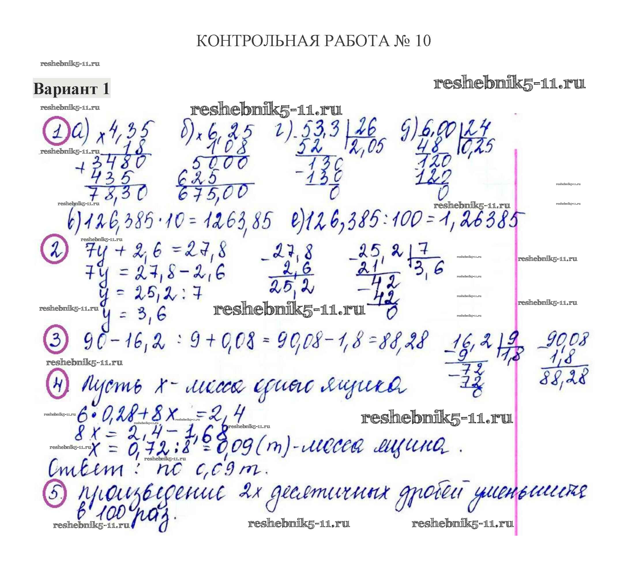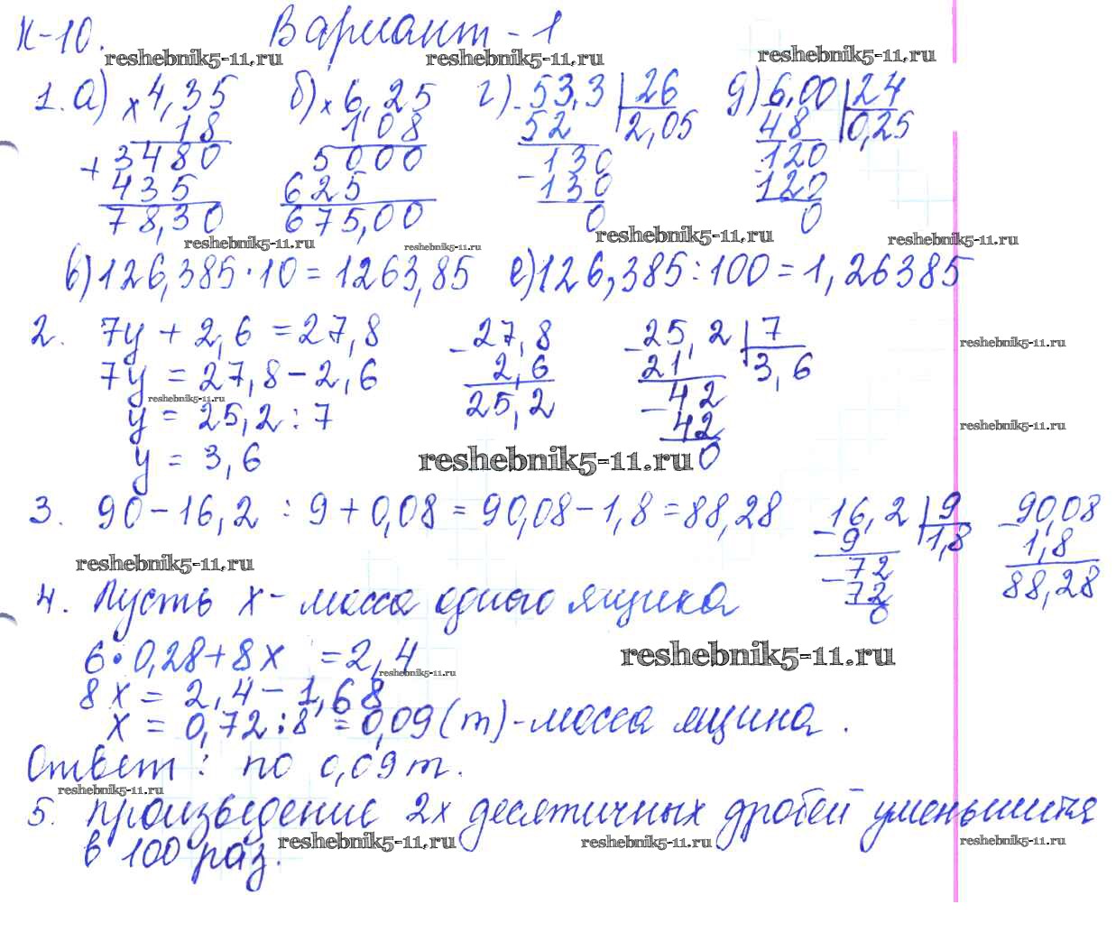 Готовая домашняя работа с ответами по Математике за 5 класс Жохов, Крайнева Контрольные работы Мнемозина 2012 ФГОС - КР-10. Варианты 1