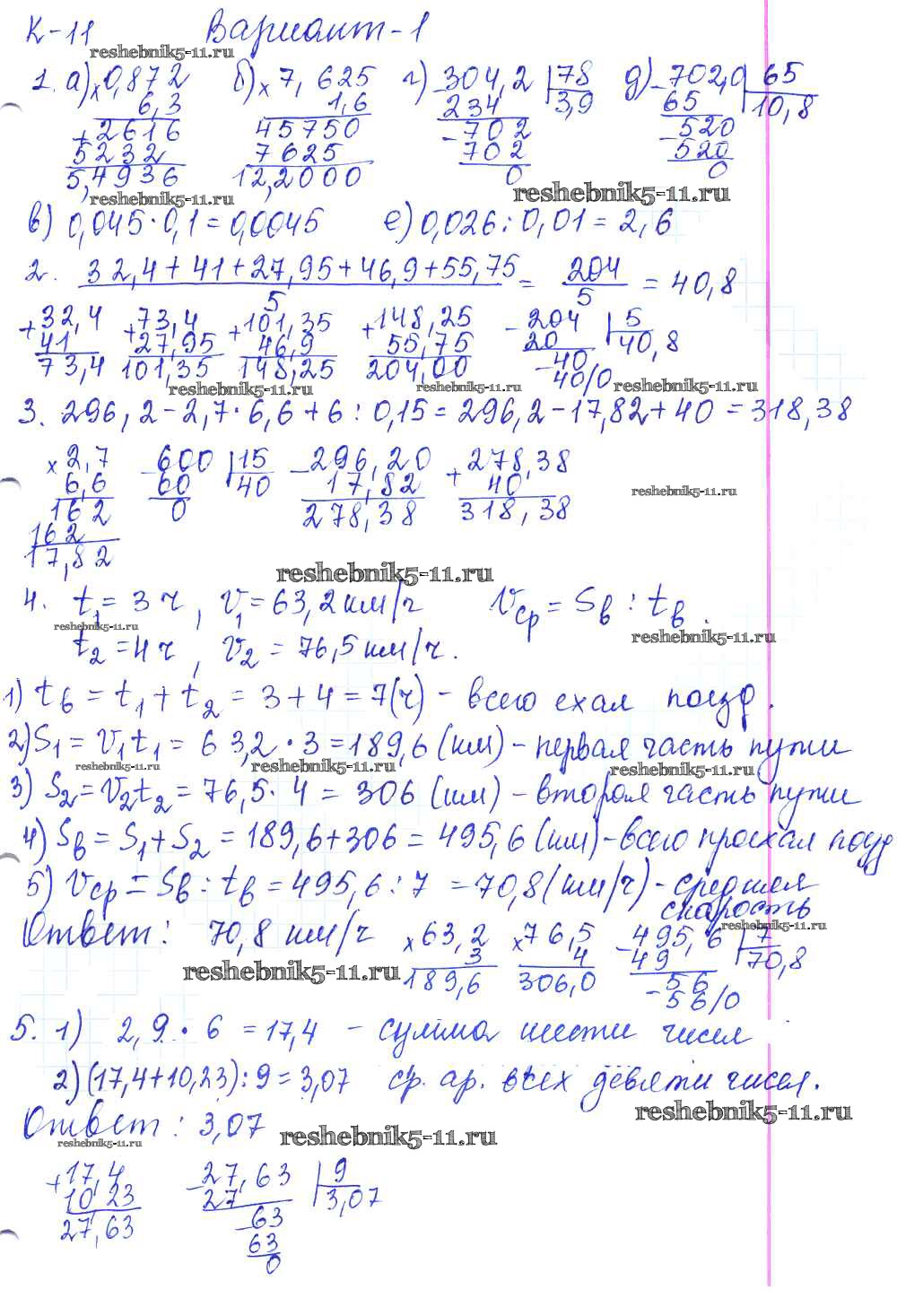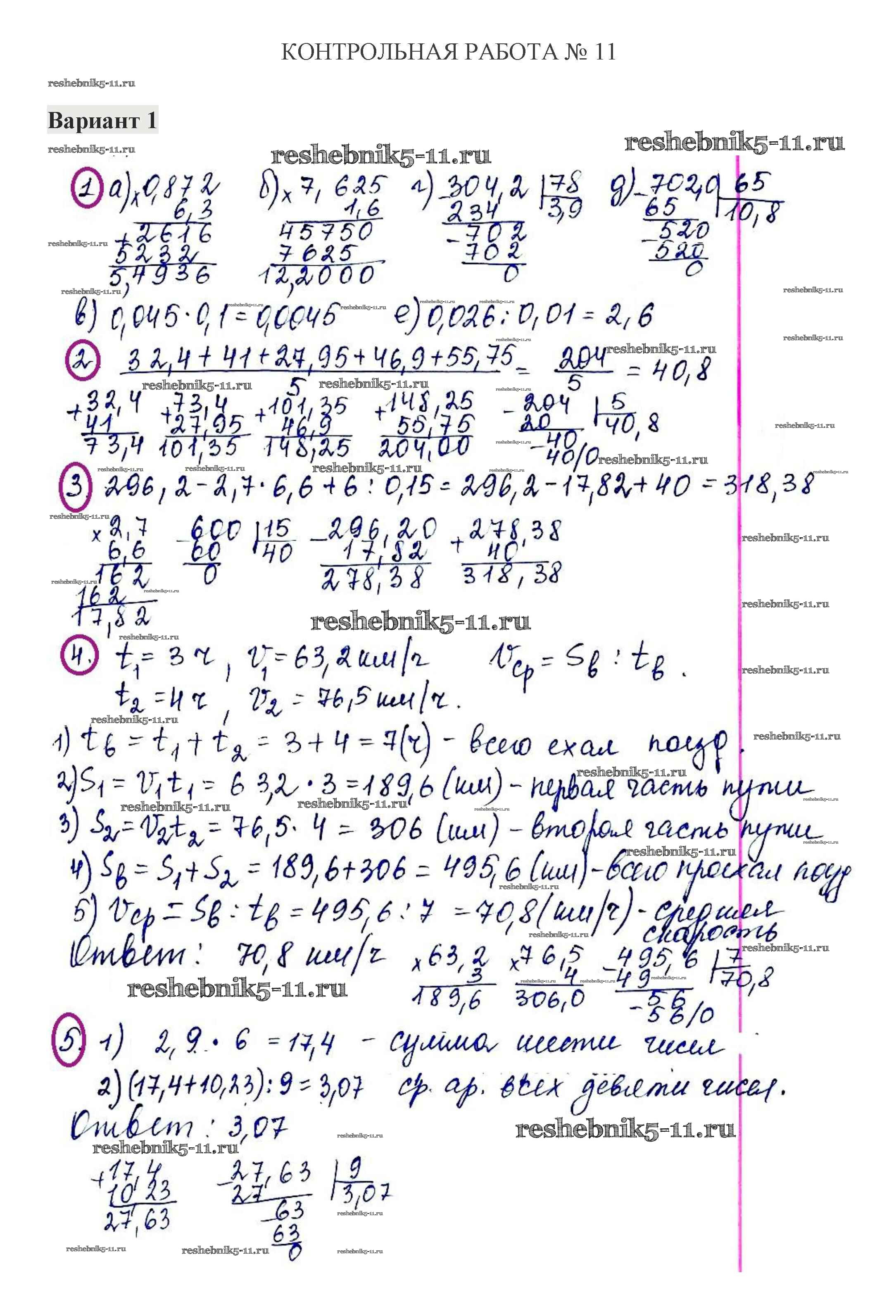 Готовая домашняя работа с ответами по Математике за 5 класс Жохов, Крайнева Контрольные работы Мнемозина 2012 ФГОС - КР-11. Варианты 1