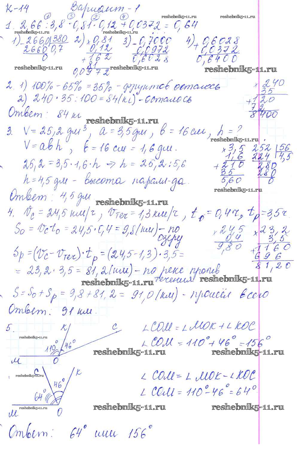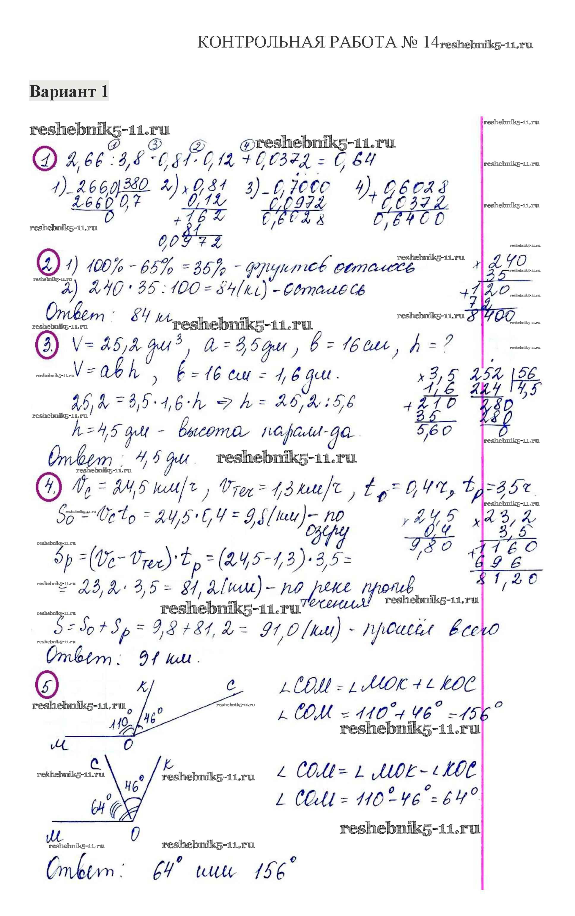 Готовая домашняя работа с ответами по Математике за 5 класс Жохов, Крайнева Контрольные работы Мнемозина 2012 ФГОС - КР-14. Варианты 1