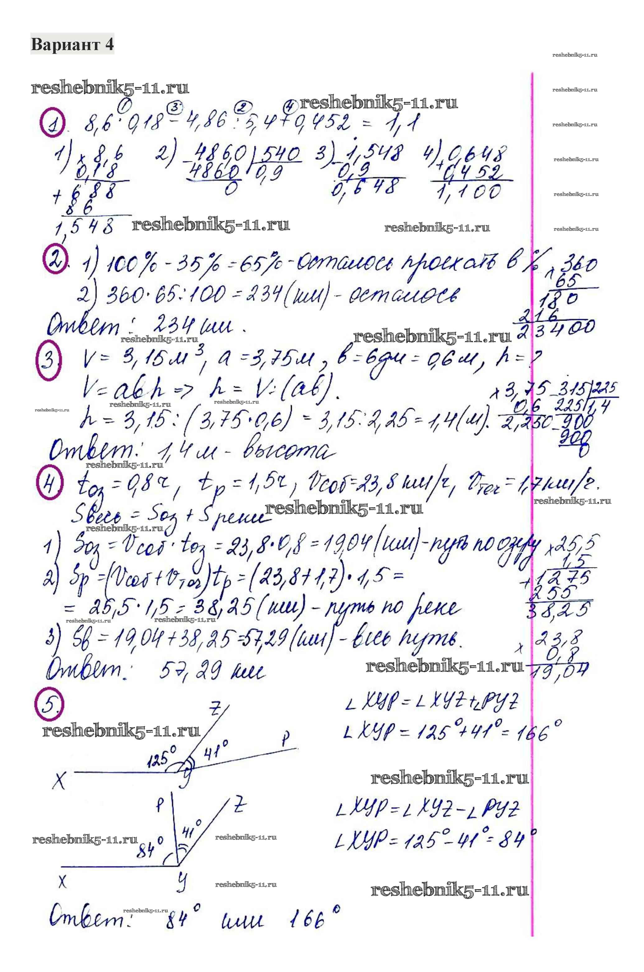Готовая домашняя работа с ответами по Математике за 5 класс Жохов, Крайнева Контрольные работы Мнемозина 2012 ФГОС - КР-14. Варианты 4