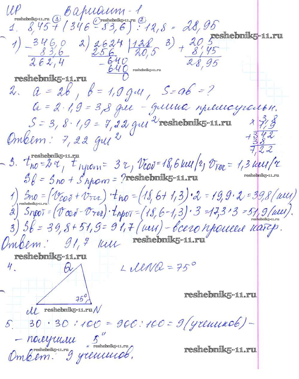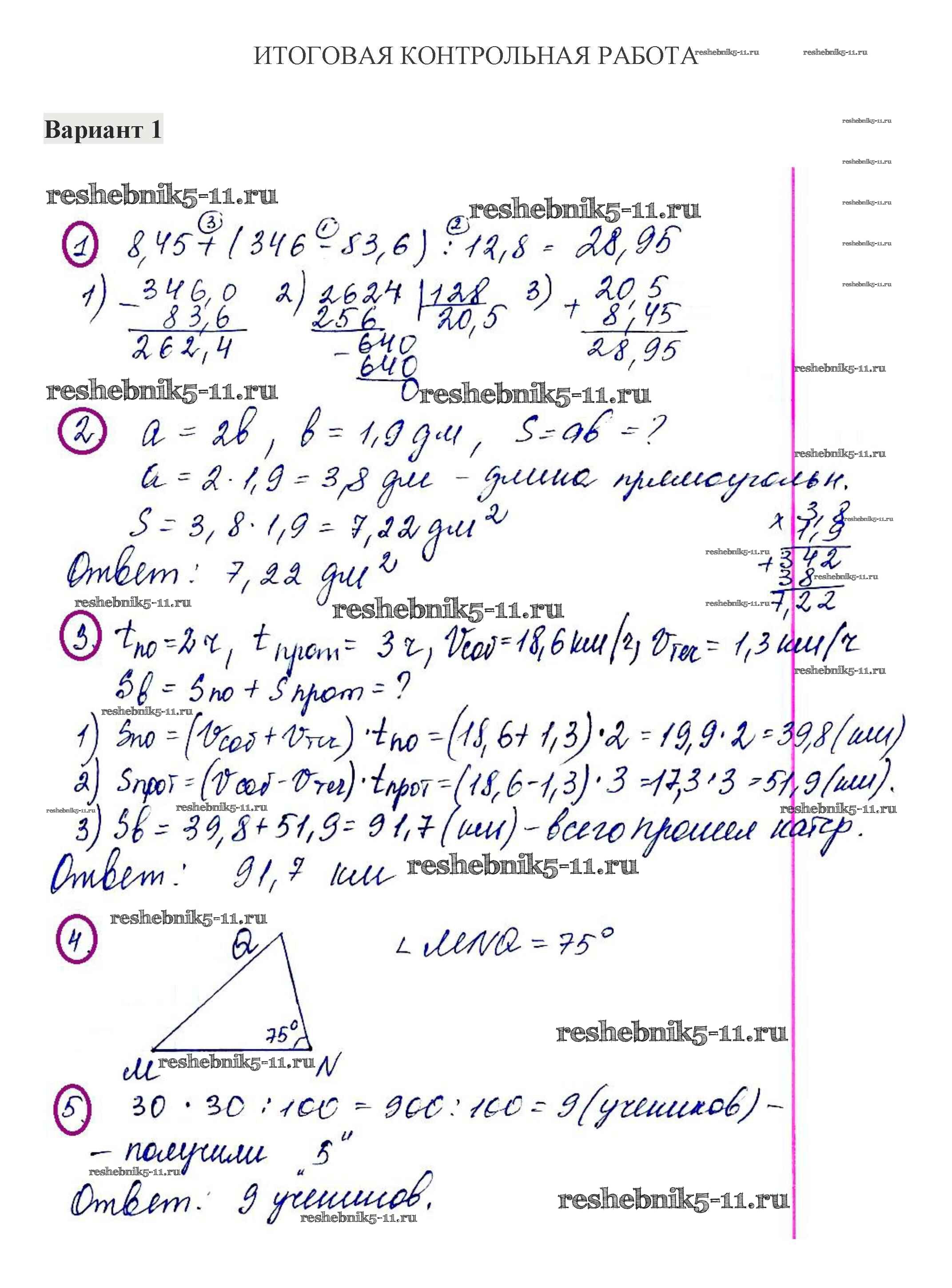 Готовая домашняя работа с ответами по Математике за 5 класс Жохов, Крайнева Контрольные работы Мнемозина 2012 ФГОС - Итоговая контрольная работа. Варианты 1