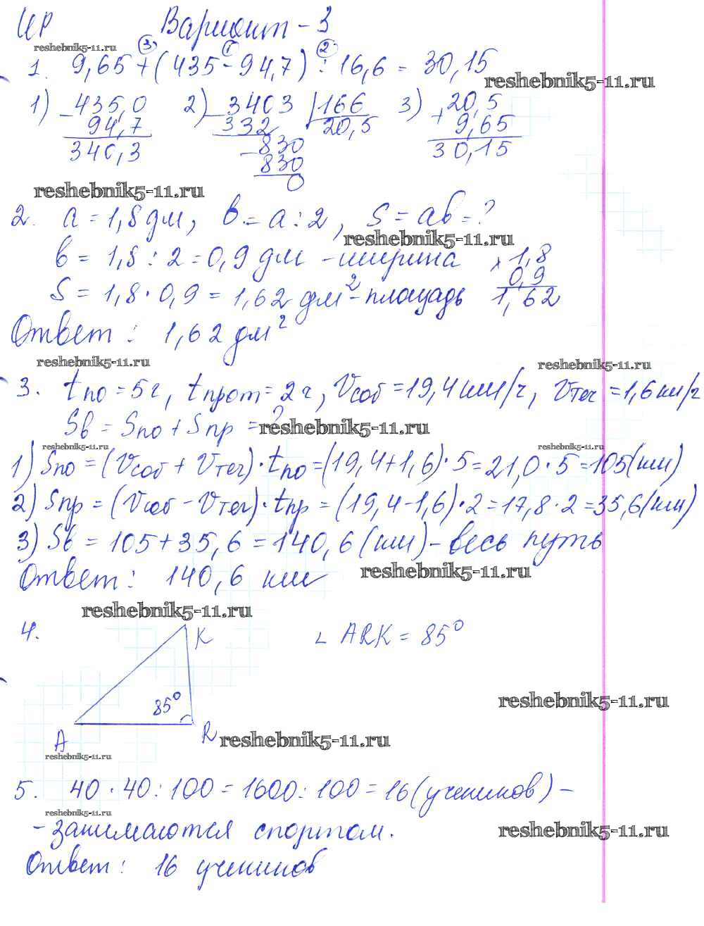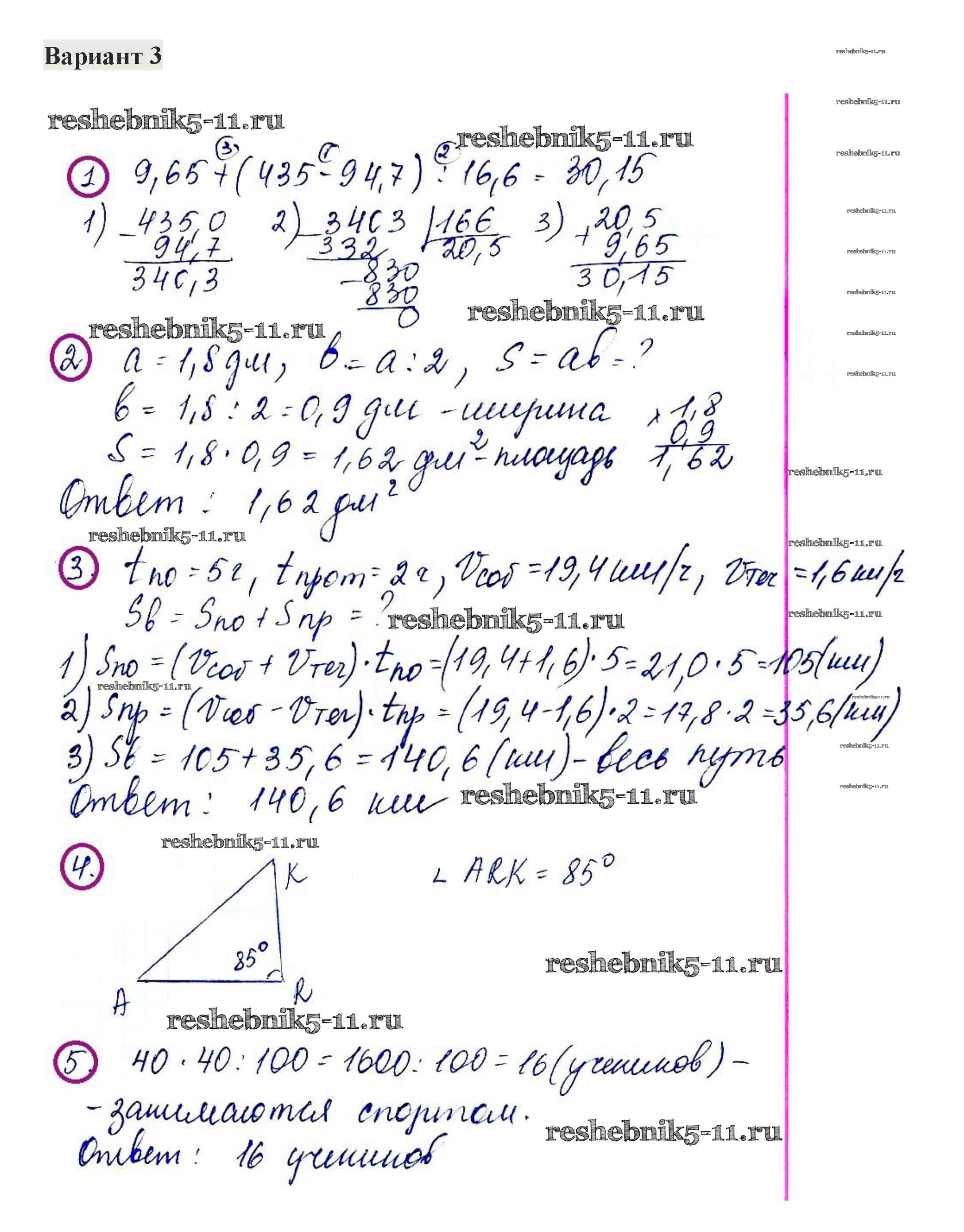 Готовая домашняя работа с ответами по Математике за 5 класс Жохов, Крайнева Контрольные работы Мнемозина 2012 ФГОС - Итоговая контрольная работа. Варианты 3