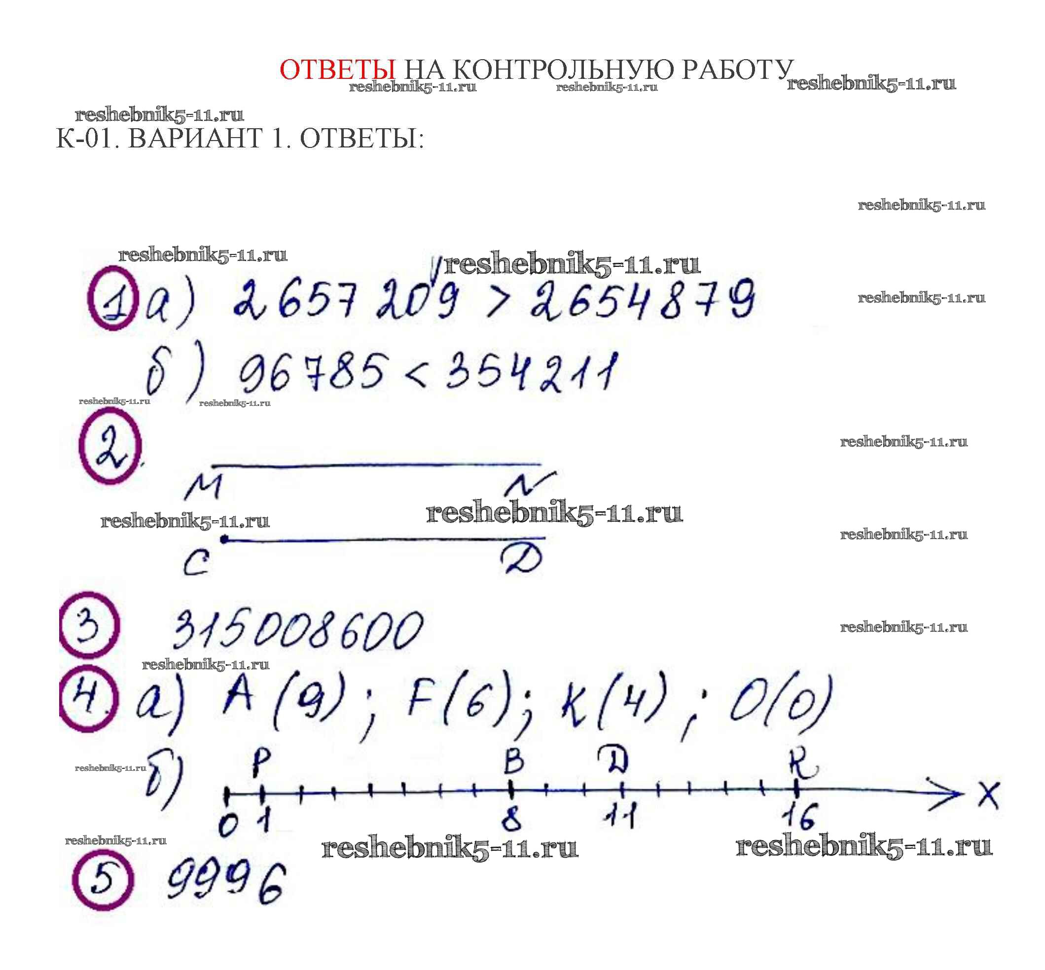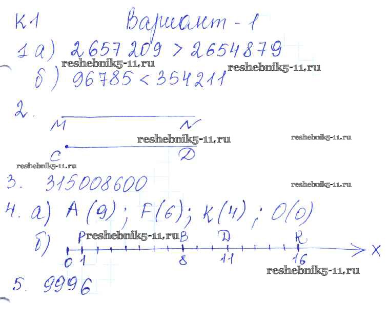 Готовая домашняя работа с ответами по Математике за 5 класс Жохов, Крайнева Контрольные работы Мнемозина 2012 ФГОС - КР-1. Варианты 1