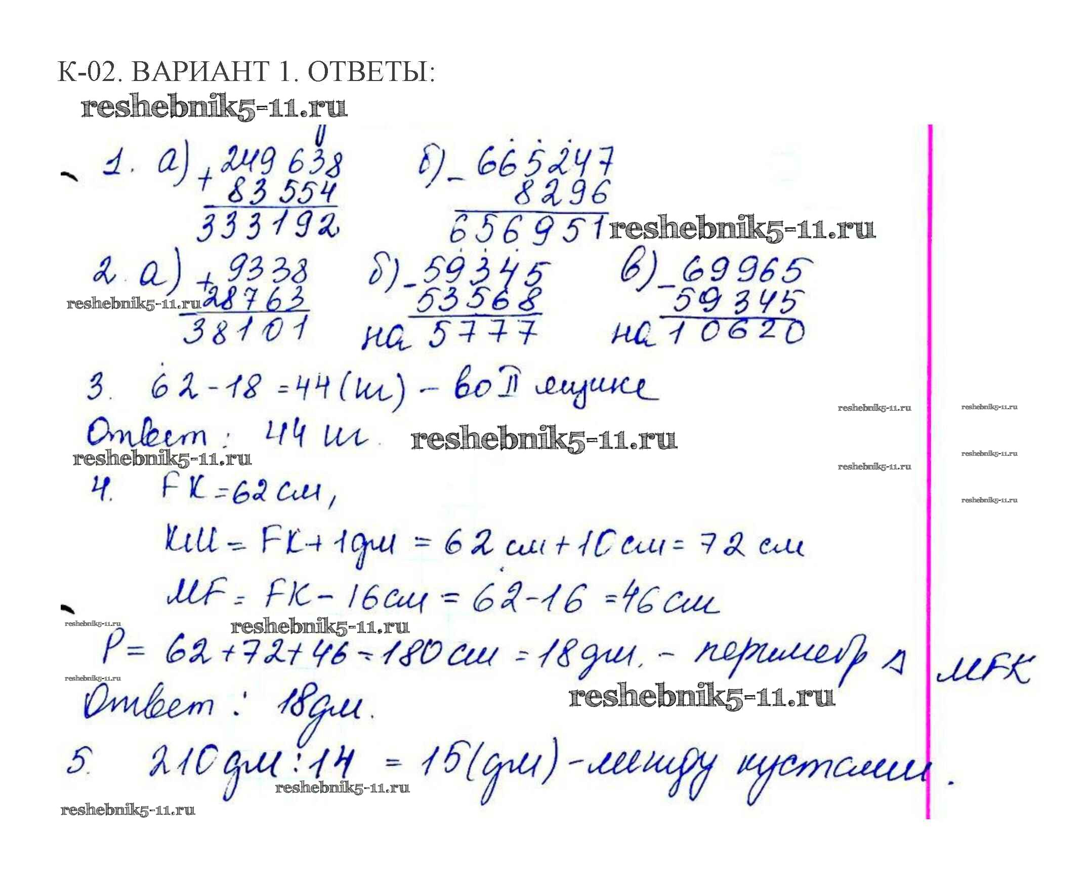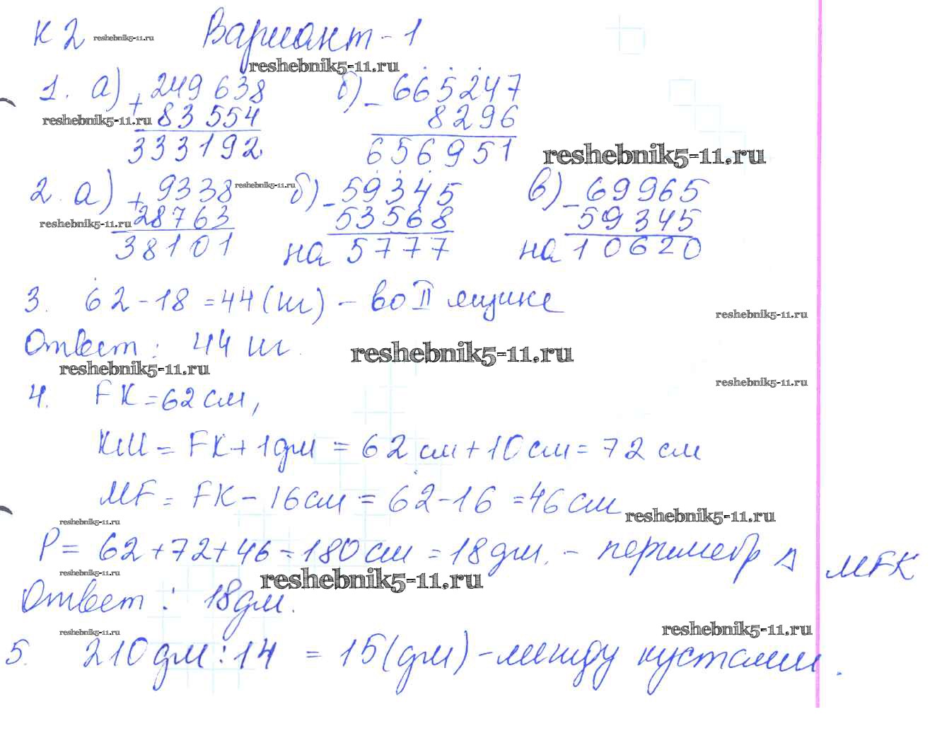 Готовая домашняя работа с ответами по Математике за 5 класс Жохов, Крайнева Контрольные работы Мнемозина 2012 ФГОС - КР-2. Варианты 1