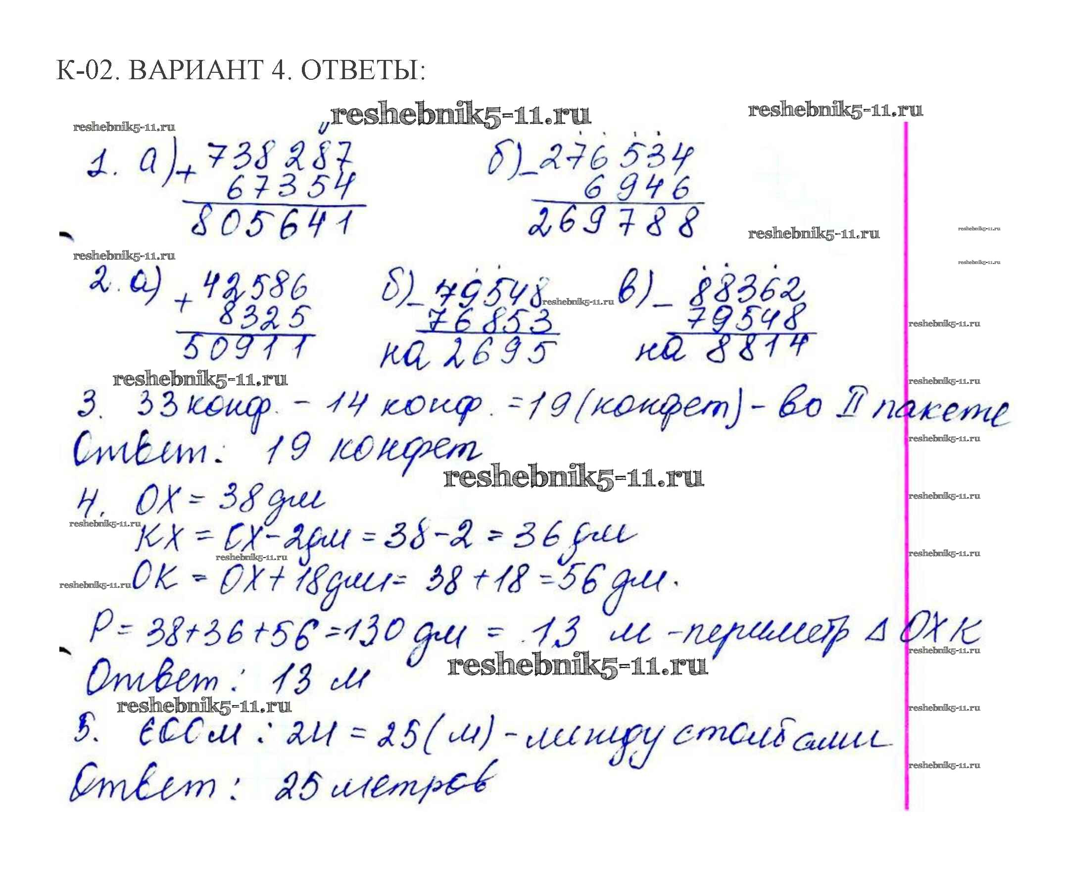 Готовая домашняя работа с ответами по Математике за 5 класс Жохов, Крайнева Контрольные работы Мнемозина 2012 ФГОС - КР-2. Варианты 4