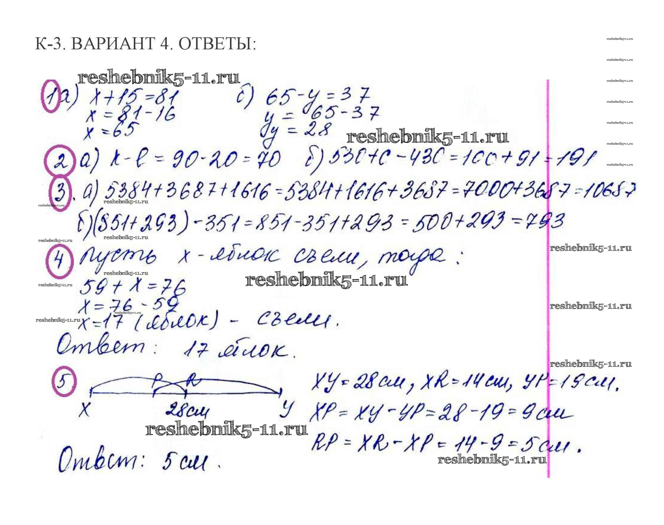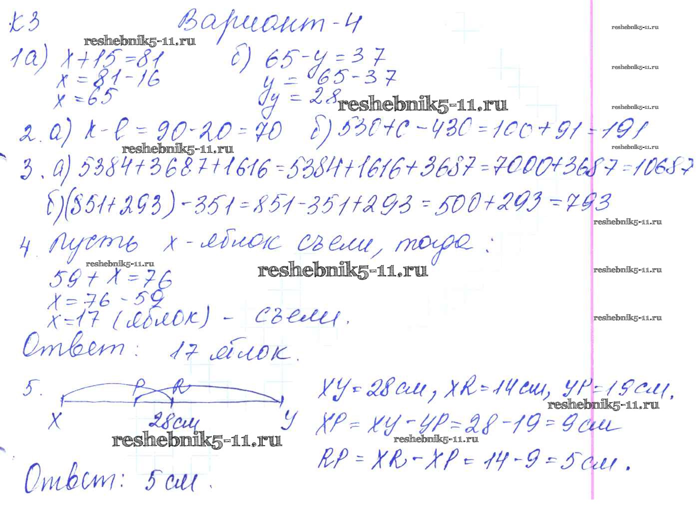 Готовая домашняя работа с ответами по Математике за 5 класс Жохов, Крайнева Контрольные работы Мнемозина 2012 ФГОС - КР-3. Варианты 4