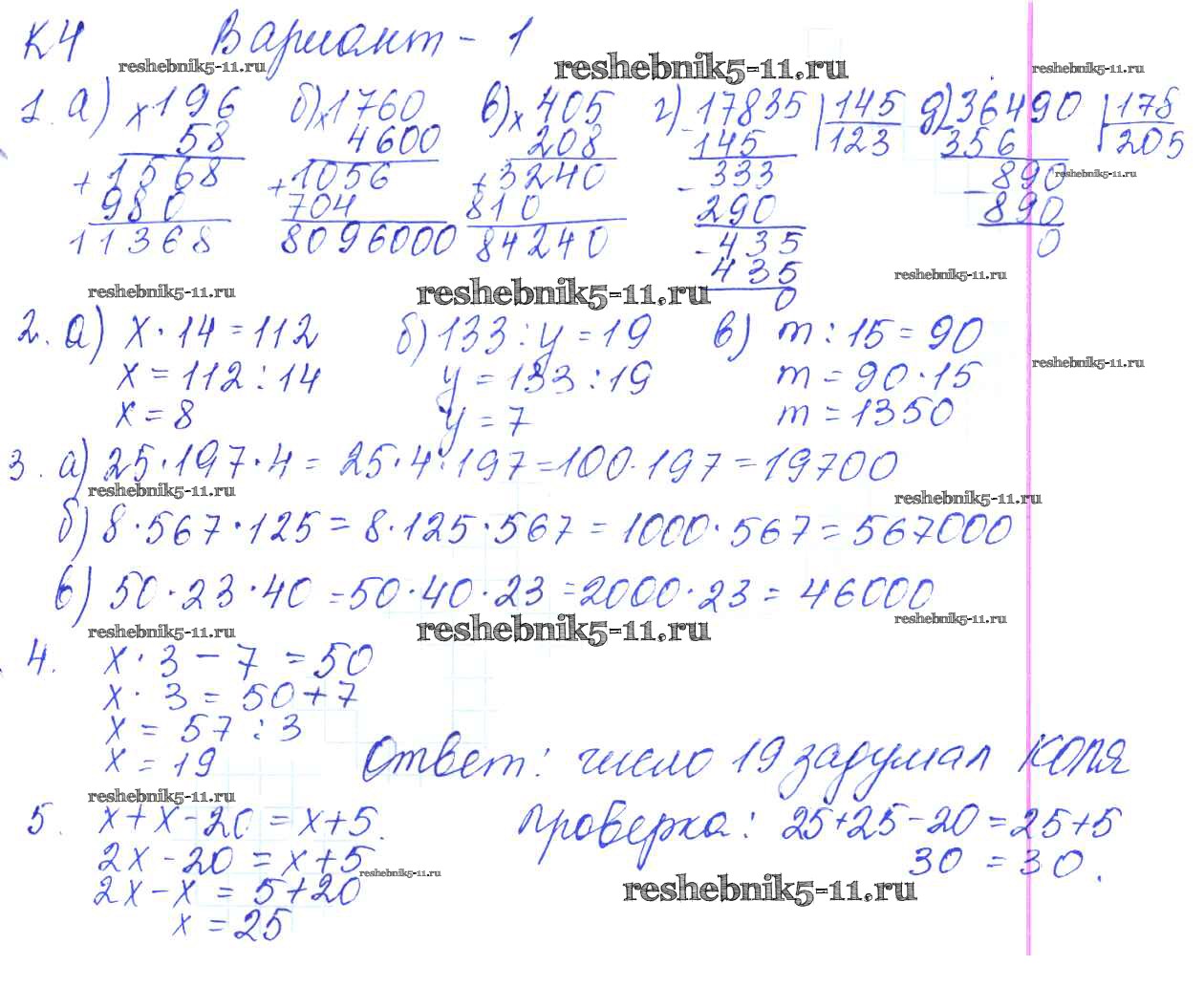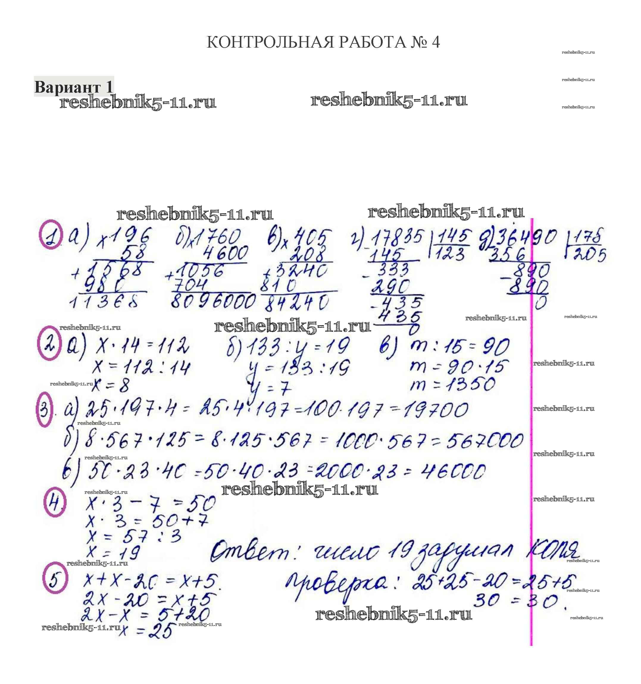 Готовая домашняя работа с ответами по Математике за 5 класс Жохов, Крайнева Контрольные работы Мнемозина 2012 ФГОС - КР-4. Варианты 1