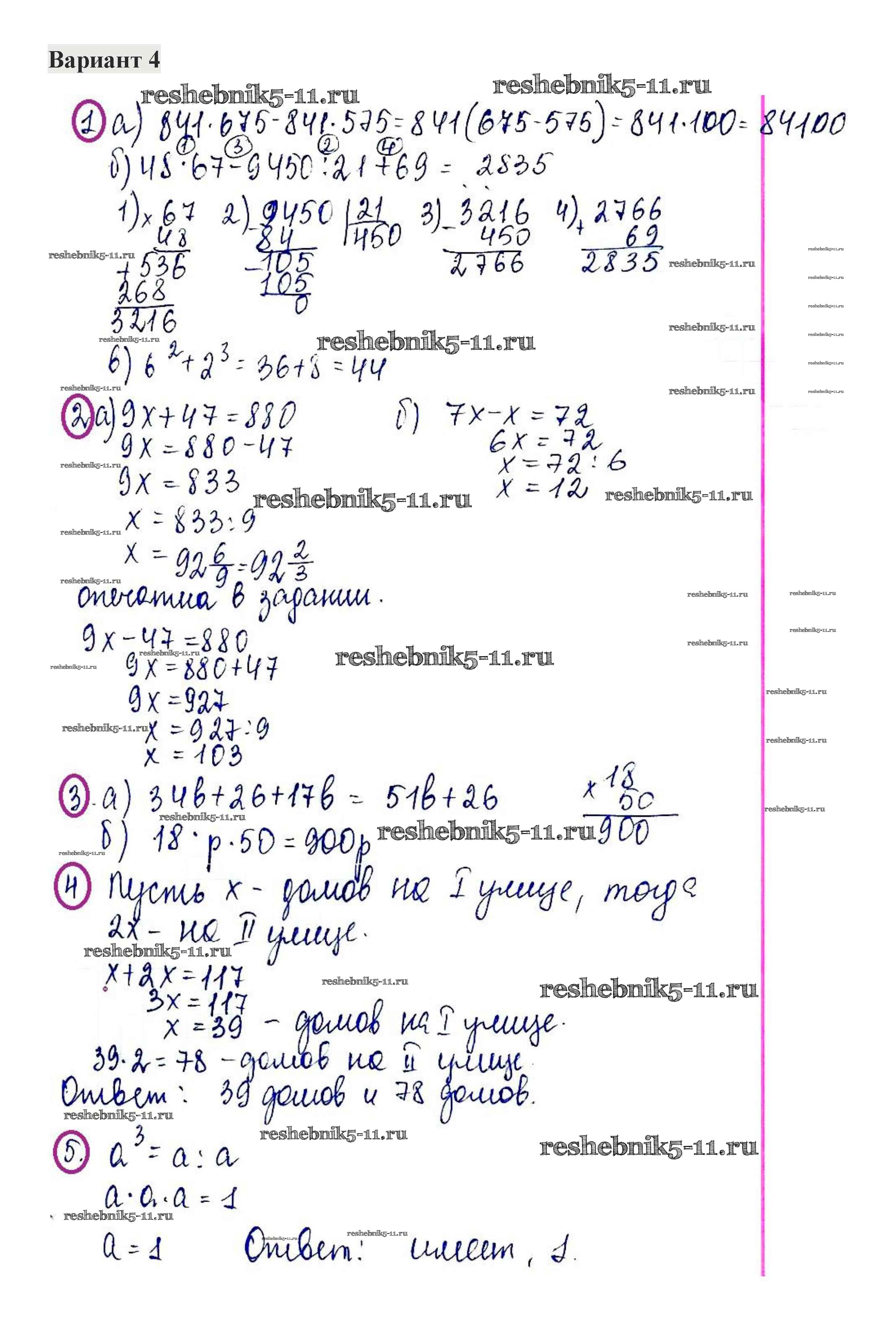 Готовая домашняя работа с ответами по Математике за 5 класс Жохов, Крайнева Контрольные работы Мнемозина 2012 ФГОС - КР-5. Варианты 4