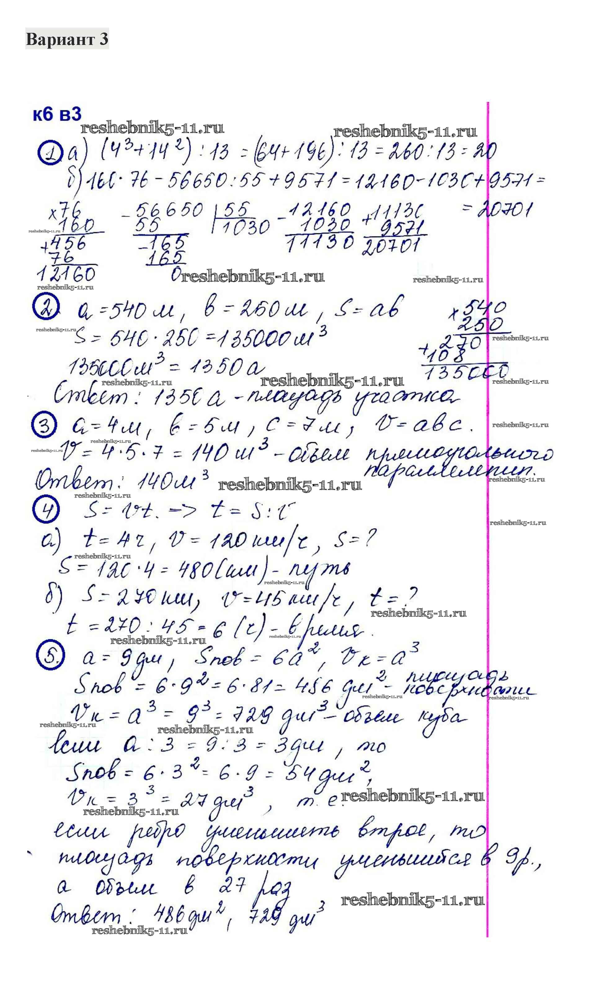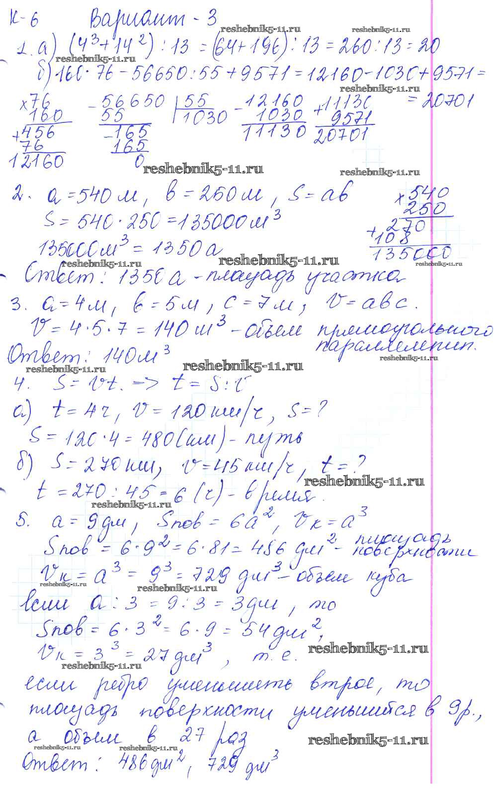 Готовая домашняя работа с ответами по Математике за 5 класс Жохов, Крайнева Контрольные работы Мнемозина 2012 ФГОС - КР-6. Варианты 3