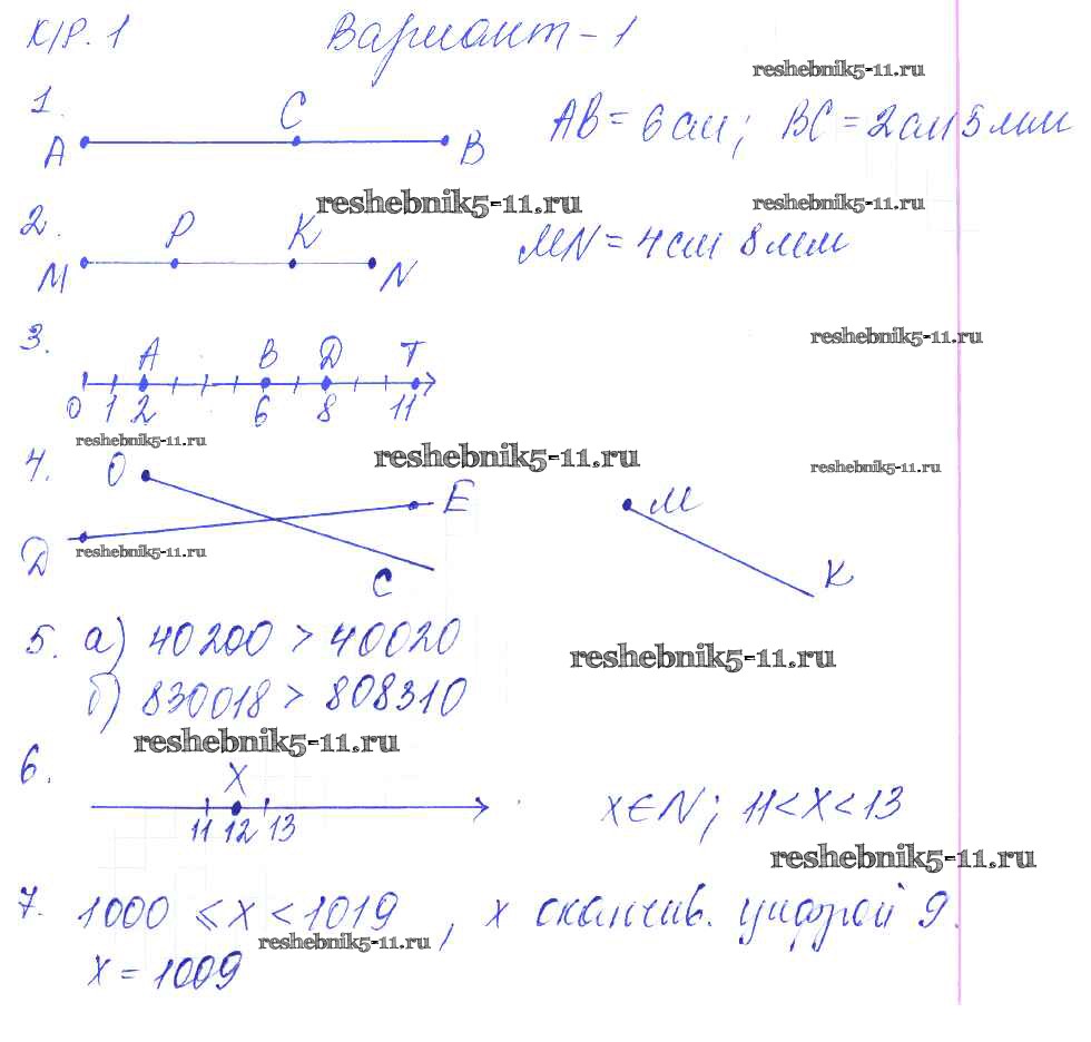 Готовая домашняя работа с ответами по Математике за 5 класс Дудницын, Кронгауз Контрольные работы УМК Экзамен 2011 ФГОС - КР-1. Варианты 1