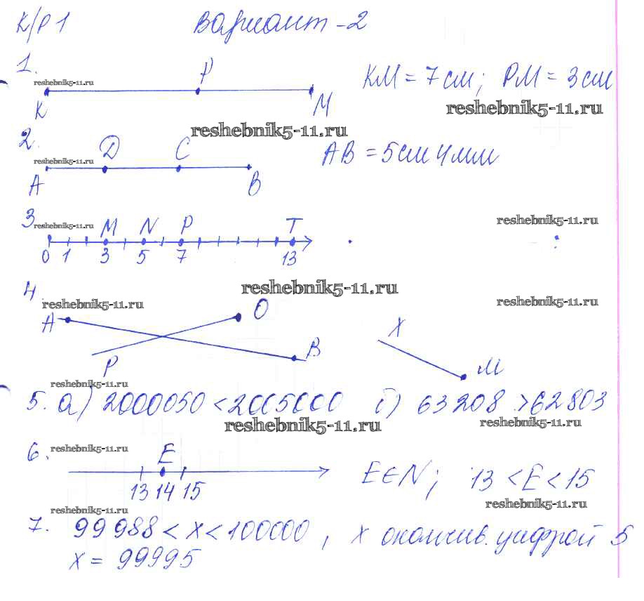 Готовая домашняя работа с ответами по Математике за 5 класс Дудницын, Кронгауз Контрольные работы УМК Экзамен 2011 ФГОС - КР-1. Варианты 2