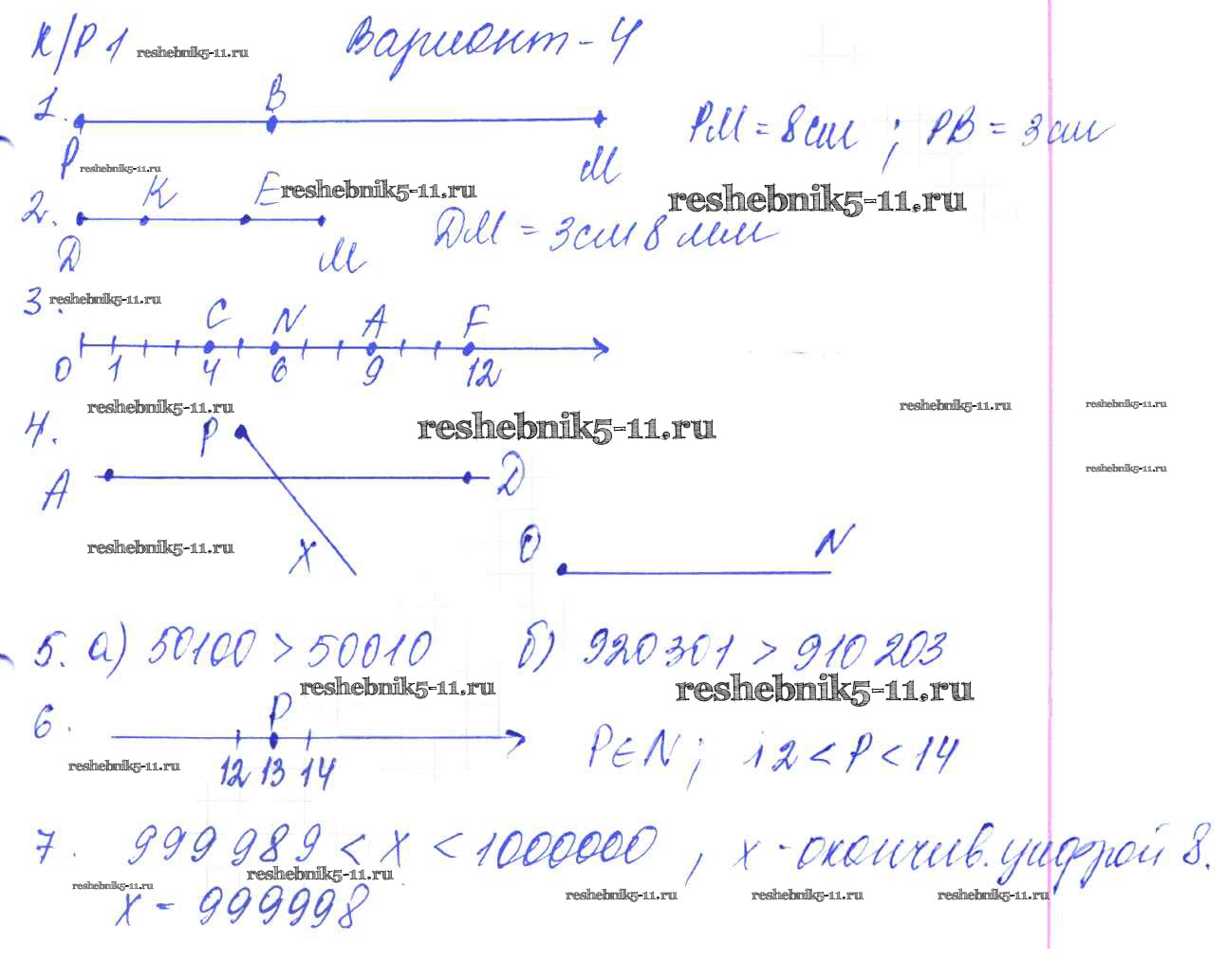 Готовая домашняя работа с ответами по Математике за 5 класс Дудницын, Кронгауз Контрольные работы УМК Экзамен 2011 ФГОС - КР-1. Варианты 4