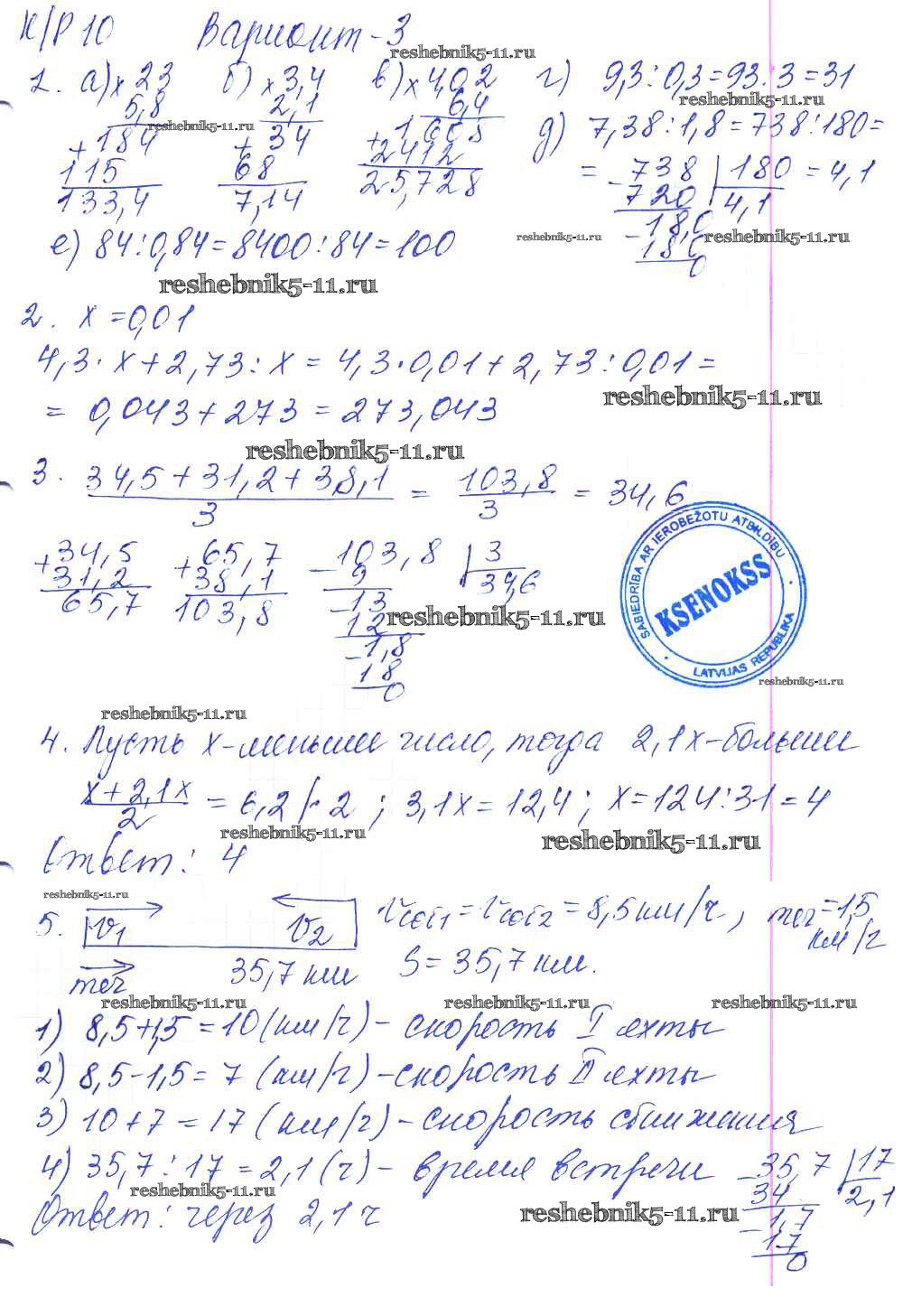 Готовая домашняя работа с ответами по Математике за 5 класс Дудницын, Кронгауз Контрольные работы УМК Экзамен 2011 ФГОС - КР-10. Варианты 3