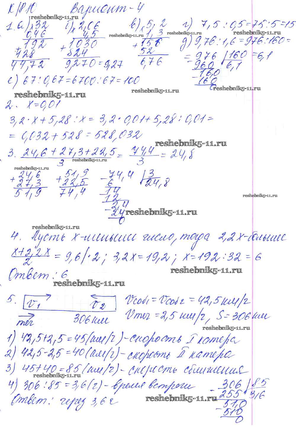 Готовая домашняя работа с ответами по Математике за 5 класс Дудницын, Кронгауз Контрольные работы УМК Экзамен 2011 ФГОС - КР-10. Варианты 4