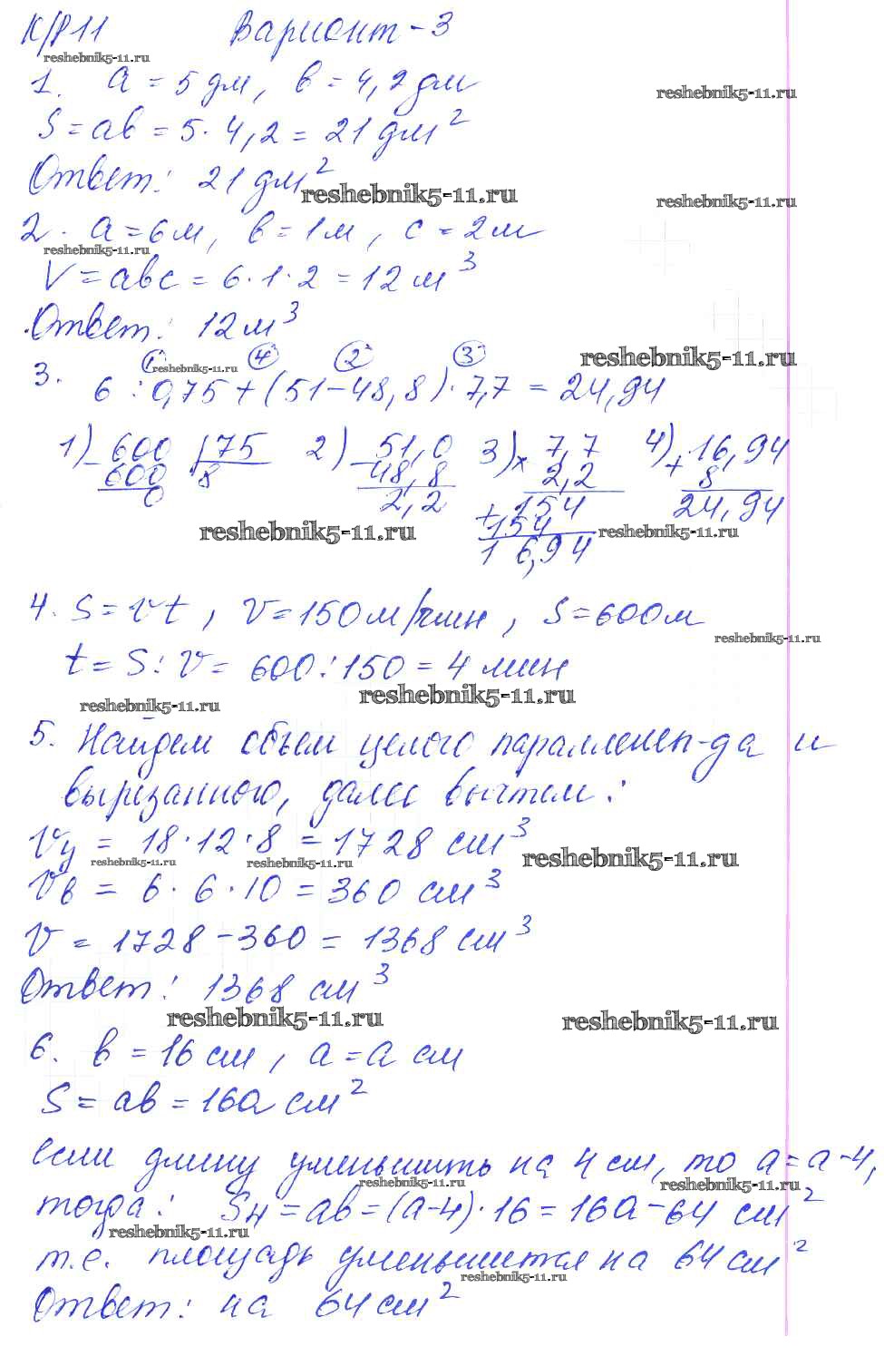 Готовая домашняя работа с ответами по Математике за 5 класс Дудницын, Кронгауз Контрольные работы УМК Экзамен 2011 ФГОС - КР-11. Варианты 3