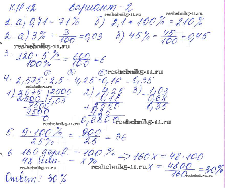 Готовая домашняя работа с ответами по Математике за 5 класс Дудницын, Кронгауз Контрольные работы УМК Экзамен 2011 ФГОС - КР-12. Варианты 2