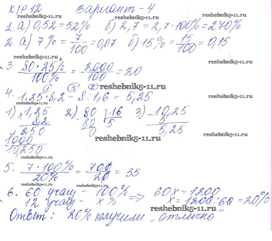 Готовая домашняя работа с ответами по Математике за 5 класс Дудницын, Кронгауз Контрольные работы УМК Экзамен 2011 ФГОС - КР-12. Варианты 4