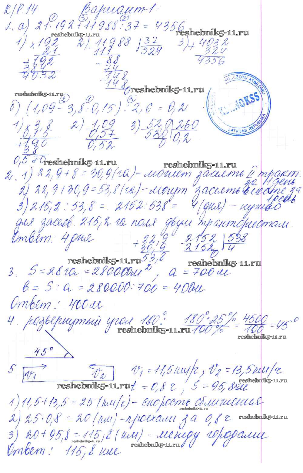 Математика за 5 класс Дудницын Контрольные работы УМК Экзамен кр-14. вариант 1