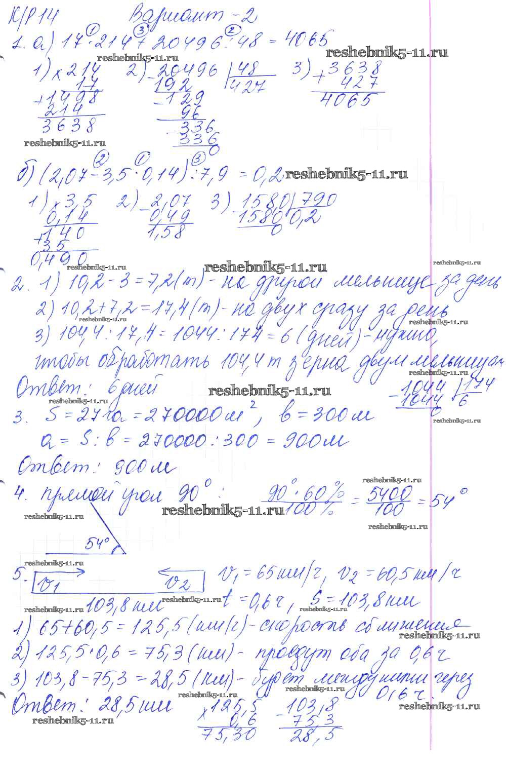 Готовая домашняя работа с ответами по Математике за 5 класс Дудницын, Кронгауз Контрольные работы УМК Экзамен 2011 ФГОС - КР-14. Варианты 2