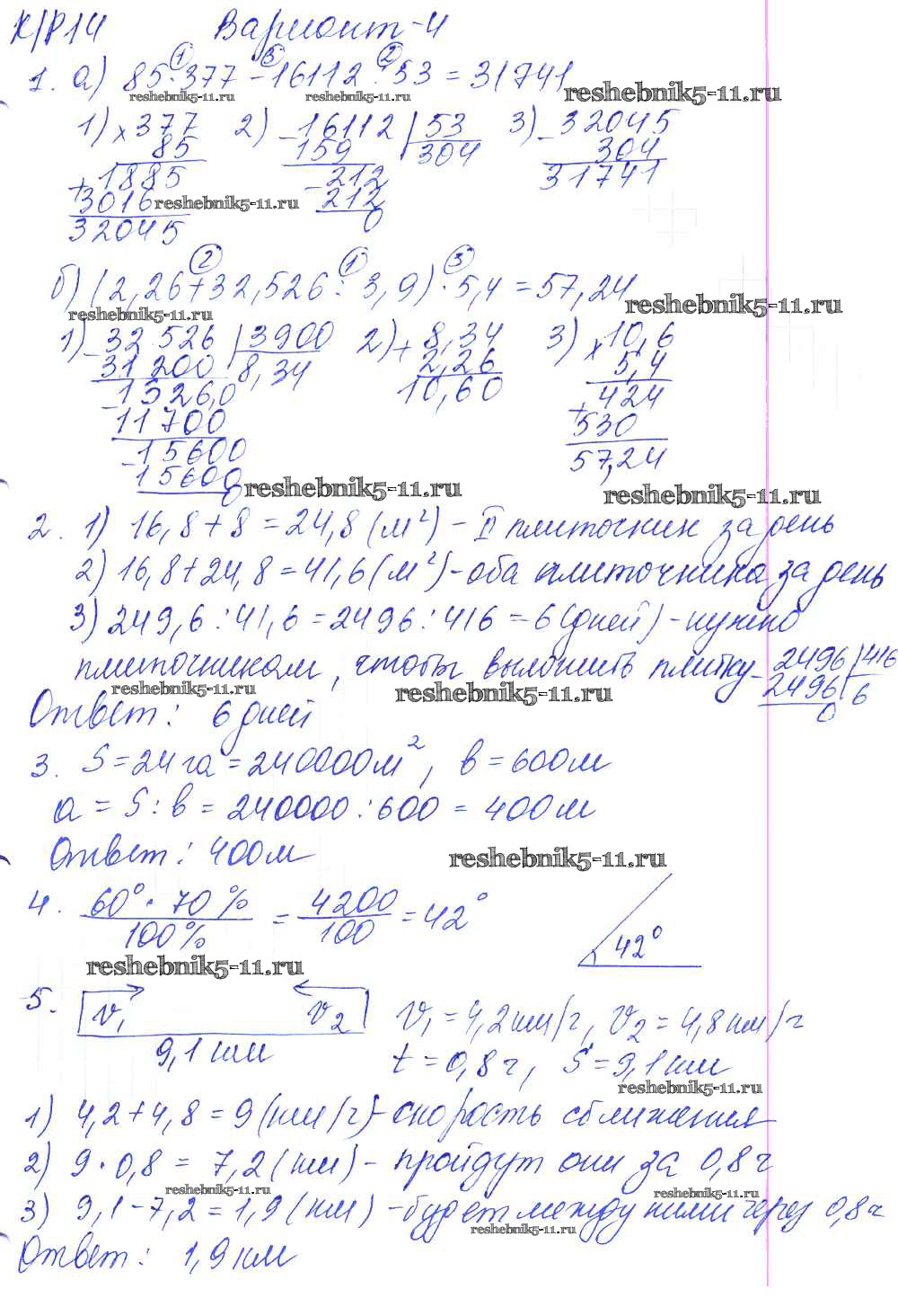 Готовая домашняя работа с ответами по Математике за 5 класс Дудницын, Кронгауз Контрольные работы УМК Экзамен 2011 ФГОС - КР-14. Варианты 4