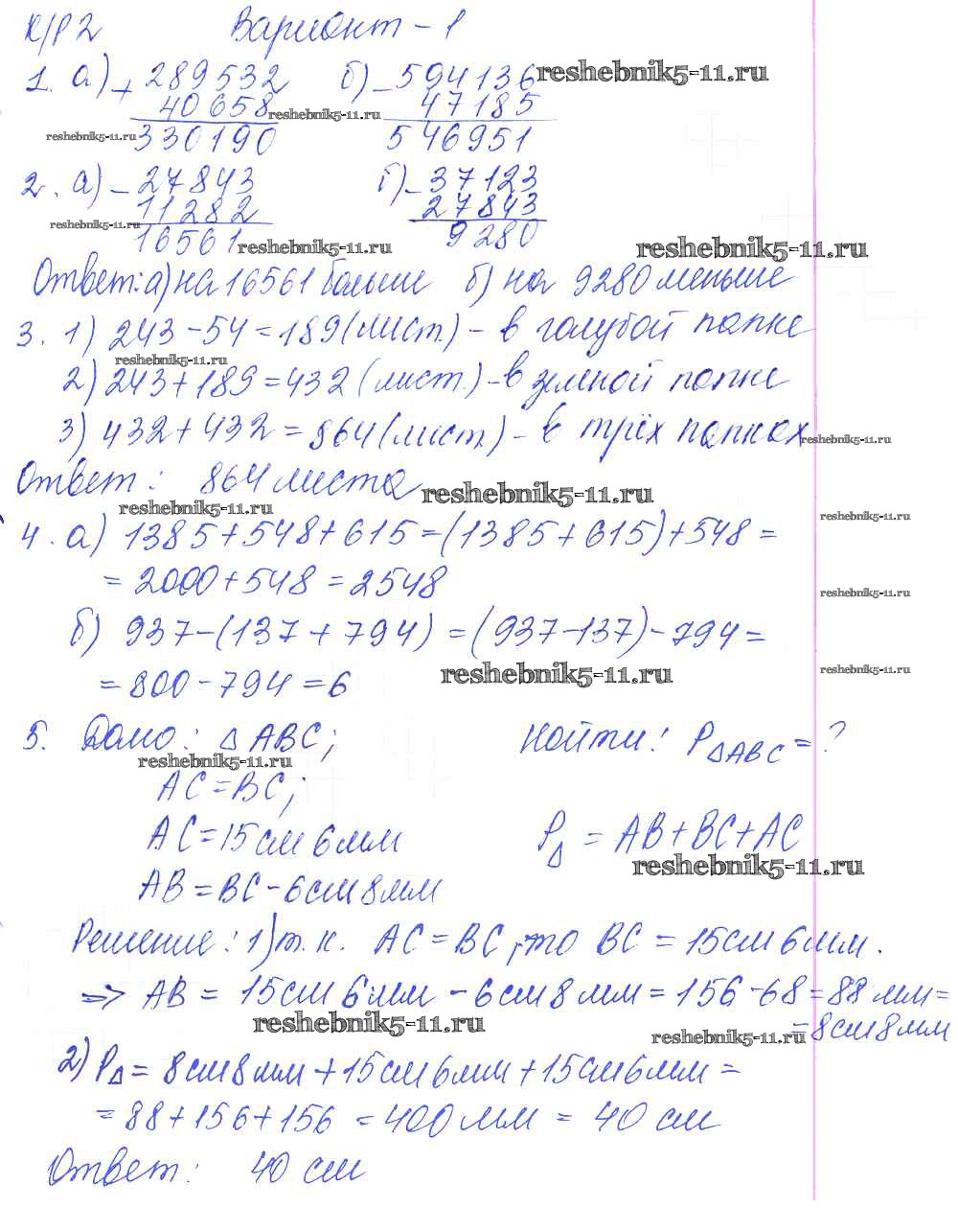 Готовая домашняя работа с ответами по Математике за 5 класс Дудницын, Кронгауз Контрольные работы УМК Экзамен 2011 ФГОС - КР-2. Варианты 1