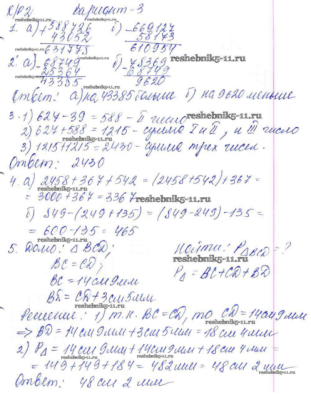 Готовая домашняя работа с ответами по Математике за 5 класс Дудницын, Кронгауз Контрольные работы УМК Экзамен 2011 ФГОС - КР-2. Варианты 3