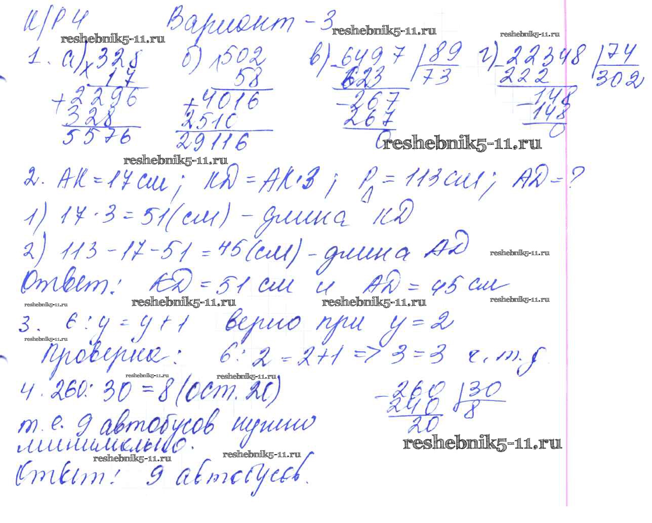 Готовая домашняя работа с ответами по Математике за 5 класс Дудницын, Кронгауз Контрольные работы УМК Экзамен 2011 ФГОС - КР-4. Варианты 3
