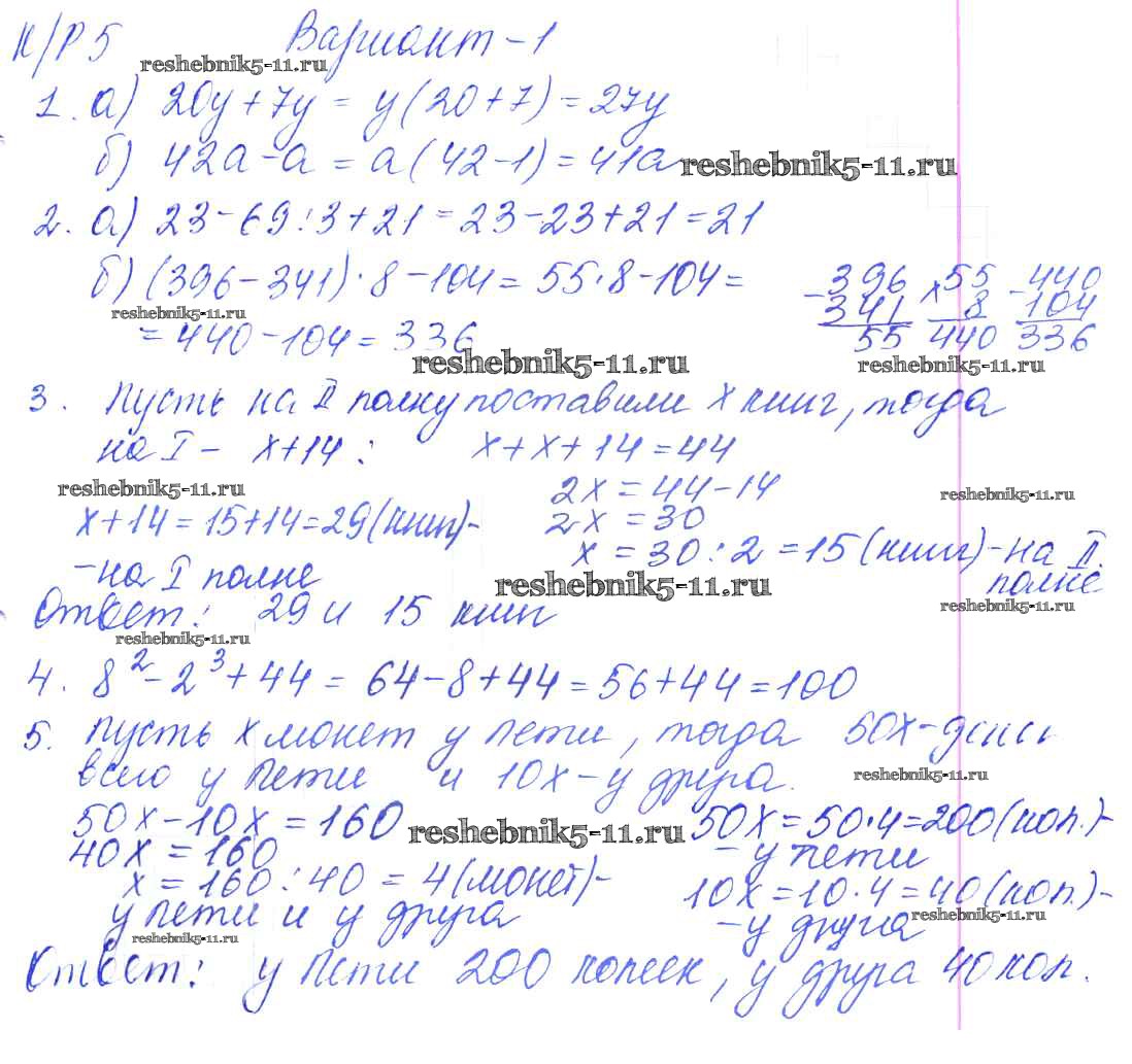 Готовая домашняя работа с ответами по Математике за 5 класс Дудницын, Кронгауз Контрольные работы УМК Экзамен 2011 ФГОС - КР-5. Варианты 1