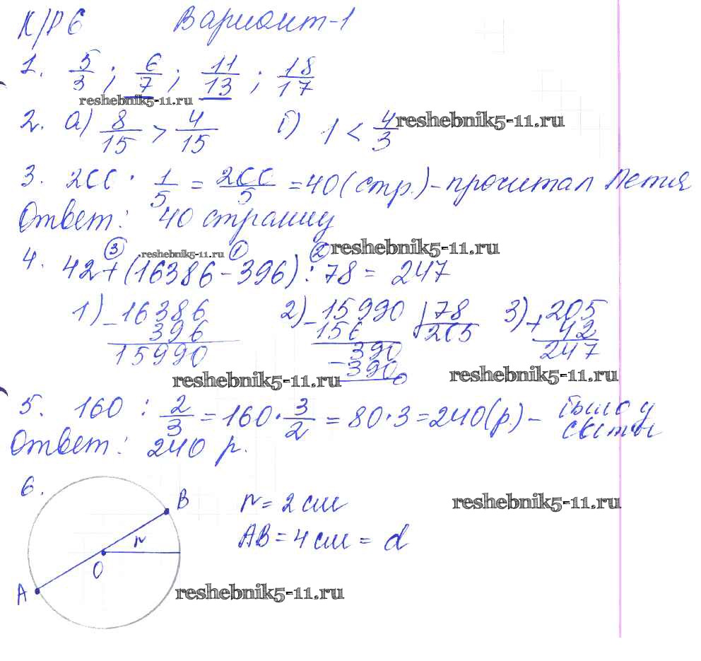 Готовая домашняя работа с ответами по Математике за 5 класс Дудницын, Кронгауз Контрольные работы УМК Экзамен 2011 ФГОС - КР-6. Варианты 1