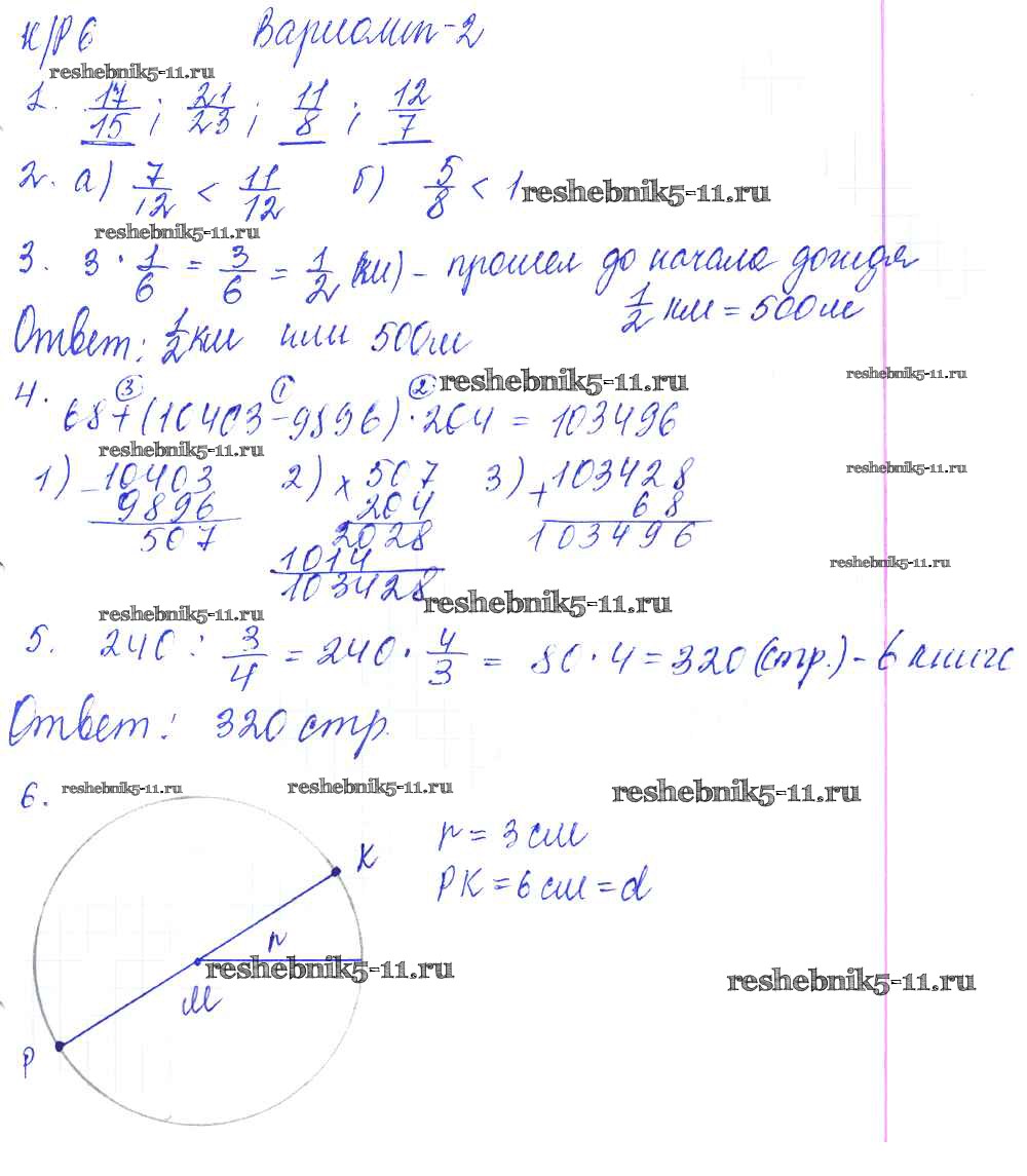 Готовая домашняя работа с ответами по Математике за 5 класс Дудницын, Кронгауз Контрольные работы УМК Экзамен 2011 ФГОС - КР-6. Варианты 2