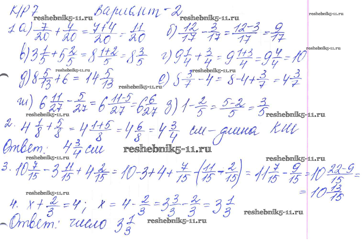 Готовая домашняя работа с ответами по Математике за 5 класс Дудницын, Кронгауз Контрольные работы УМК Экзамен 2011 ФГОС - КР-7. Варианты 2