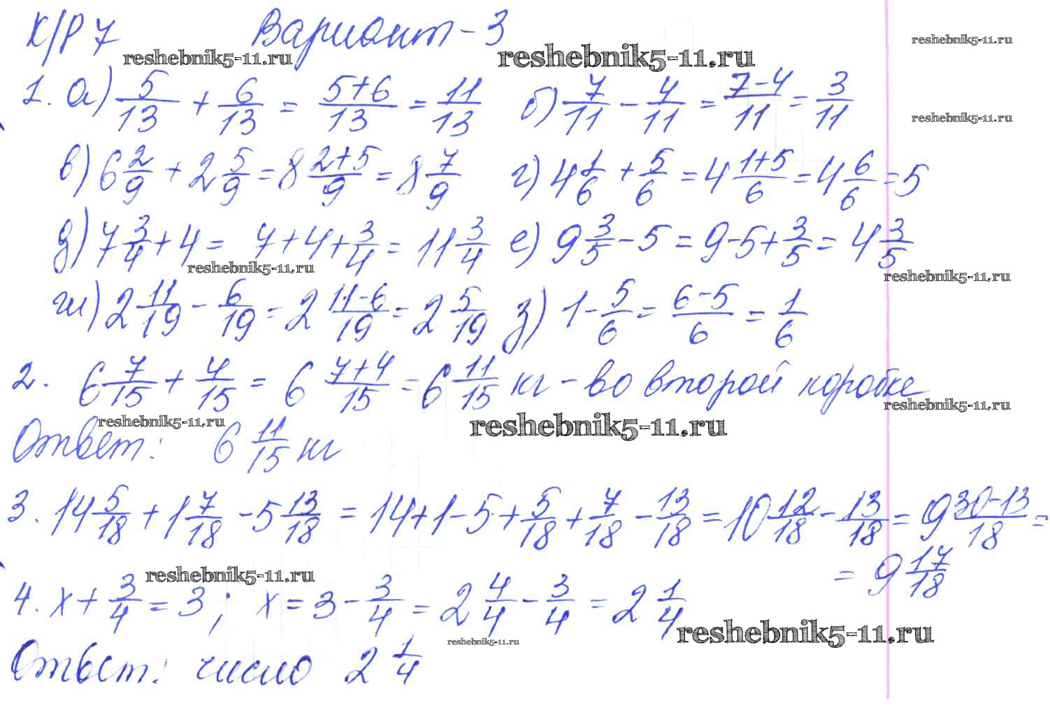Готовая домашняя работа с ответами по Математике за 5 класс Дудницын, Кронгауз Контрольные работы УМК Экзамен 2011 ФГОС - КР-7. Варианты 3