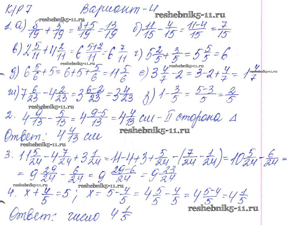 Готовая домашняя работа с ответами по Математике за 5 класс Дудницын, Кронгауз Контрольные работы УМК Экзамен 2011 ФГОС - КР-7. Варианты 4