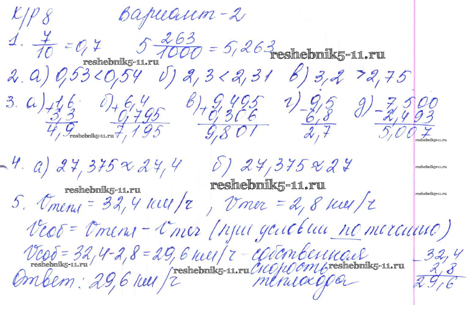 Готовая домашняя работа с ответами по Математике за 5 класс Дудницын, Кронгауз Контрольные работы УМК Экзамен 2011 ФГОС - КР-8. Варианты 2