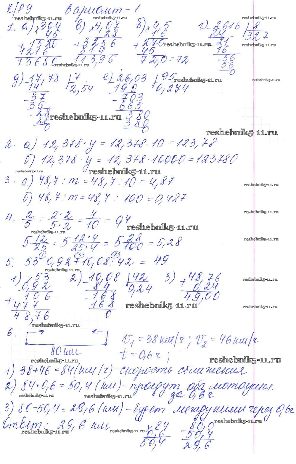Готовая домашняя работа с ответами по Математике за 5 класс Дудницын, Кронгауз Контрольные работы УМК Экзамен 2011 ФГОС - КР-9. Варианты 1