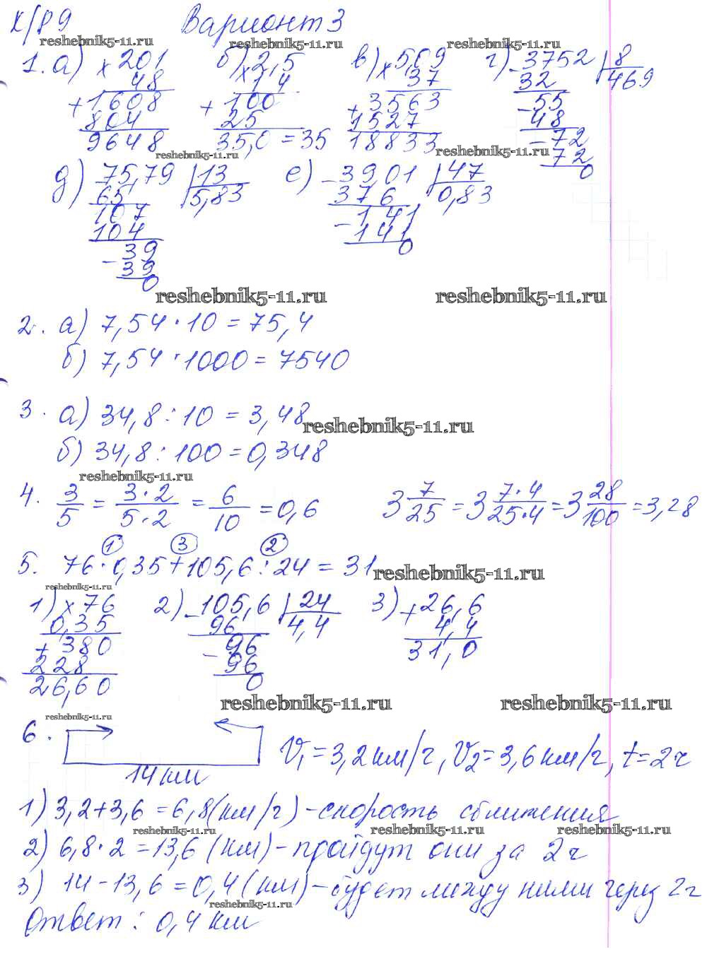 Готовая домашняя работа с ответами по Математике за 5 класс Дудницын, Кронгауз Контрольные работы УМК Экзамен 2011 ФГОС - КР-9. Варианты 3