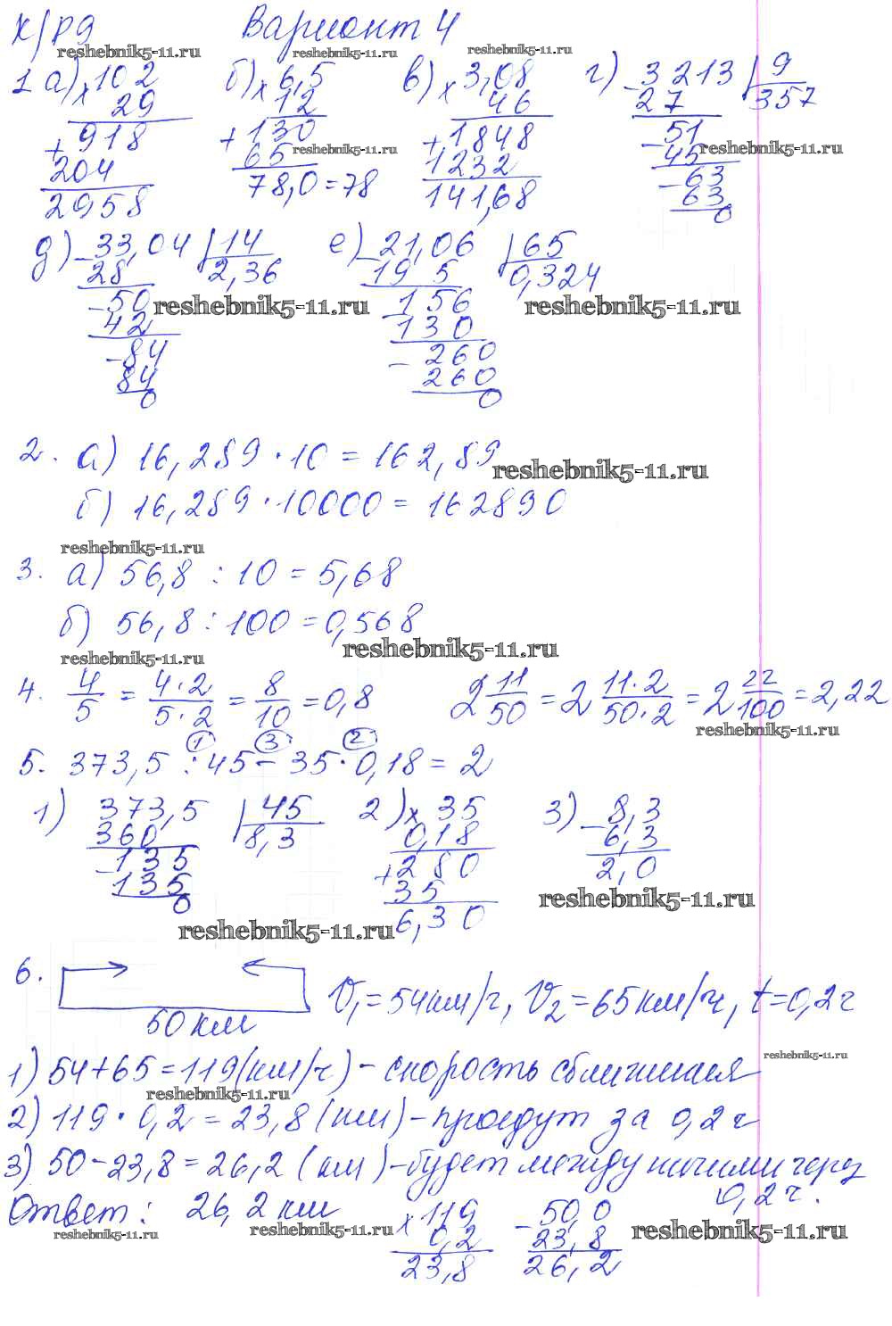 Готовая домашняя работа с ответами по Математике за 5 класс Дудницын, Кронгауз Контрольные работы УМК Экзамен 2011 ФГОС - КР-9. Варианты 4