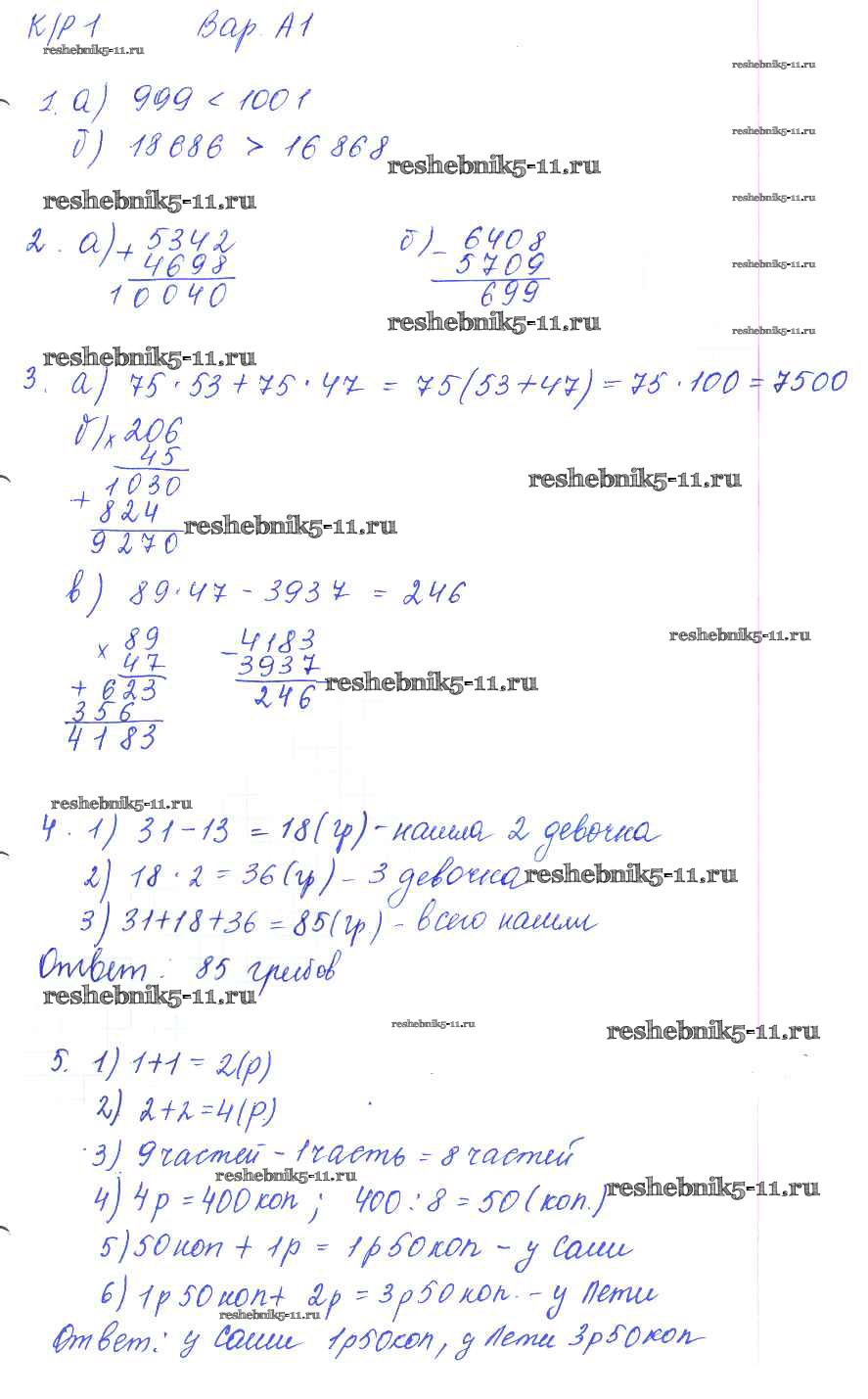 Готовая домашняя работа с ответами по Математике за 5 класс Ерина Контрольные работы УМК Экзамен 2020 ФГОС - КР-1. Варианты 1