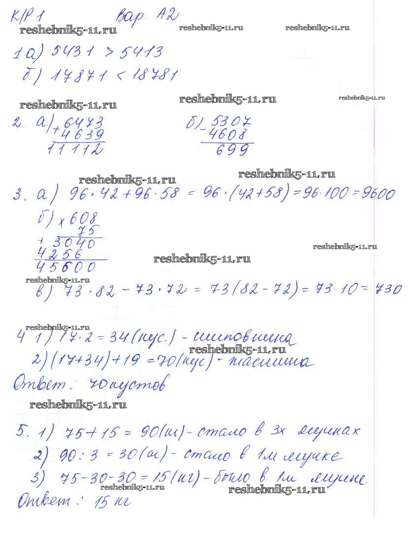 Готовая домашняя работа с ответами по Математике за 5 класс Ерина Контрольные работы УМК Экзамен 2020 ФГОС - КР-1. Варианты 2