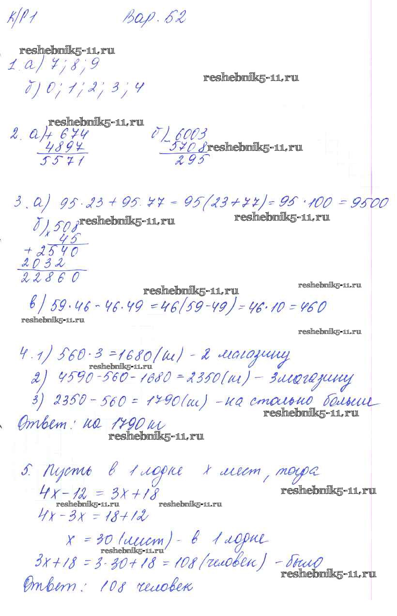 Готовая домашняя работа с ответами по Математике за 5 класс Ерина Контрольные работы УМК Экзамен 2020 ФГОС - КР-1. Варианты 4