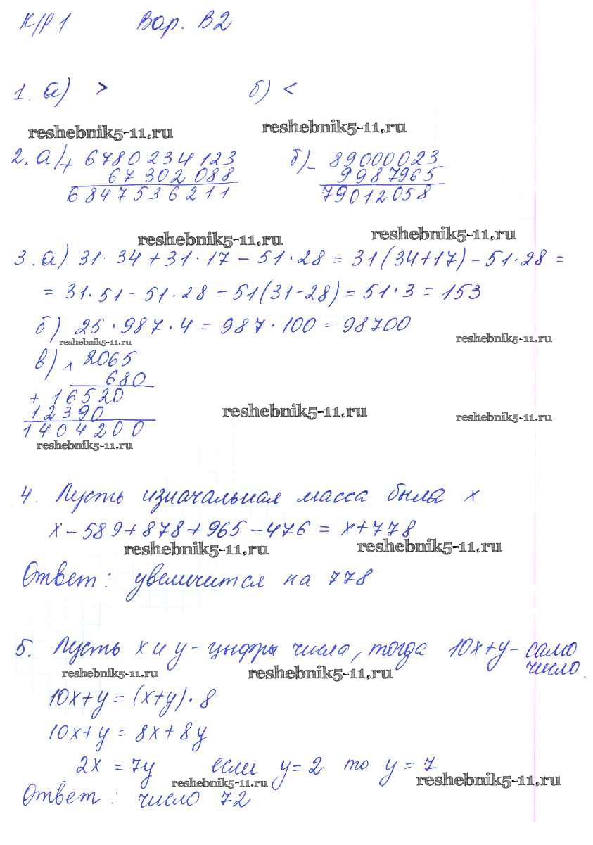 Готовая домашняя работа с ответами по Математике за 5 класс Ерина Контрольные работы УМК Экзамен 2020 ФГОС - КР-1. Варианты 6