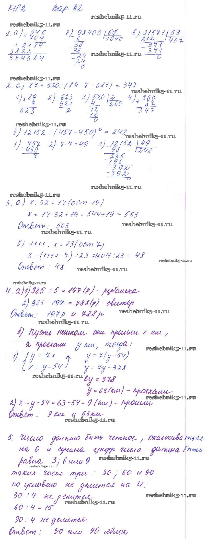 Готовая домашняя работа с ответами по Математике за 5 класс Ерина Контрольные работы УМК Экзамен 2020 ФГОС - КР-2. Варианты 2