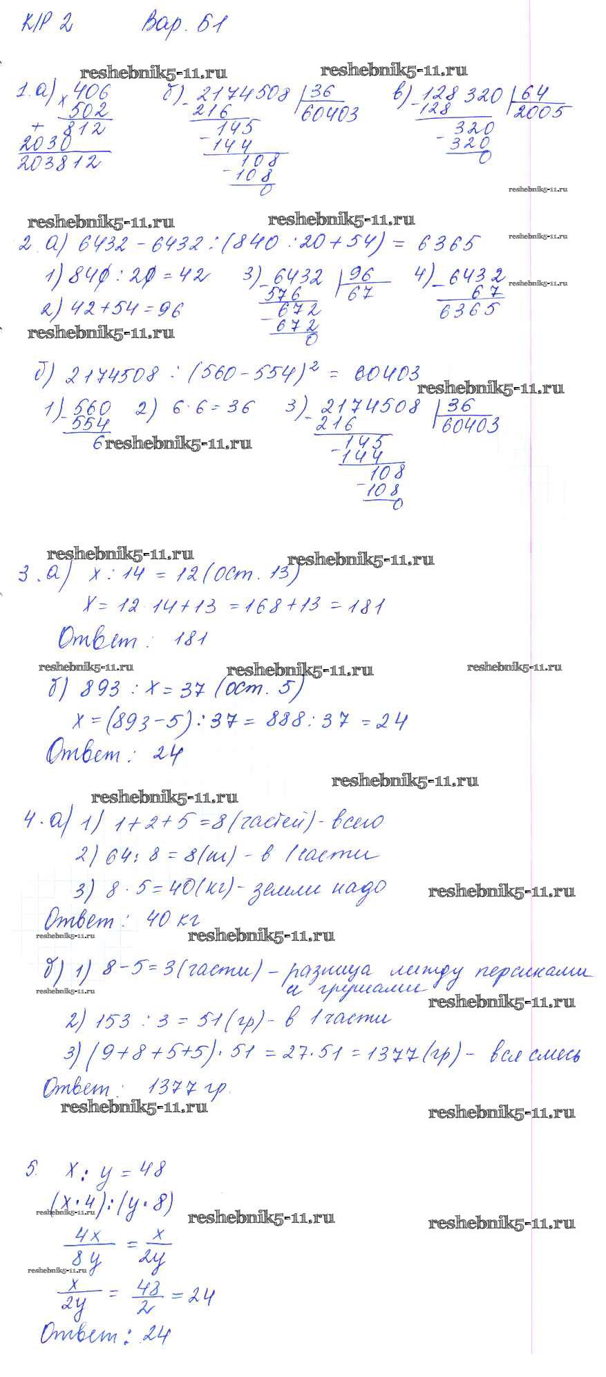 Готовая домашняя работа с ответами по Математике за 5 класс Ерина Контрольные работы УМК Экзамен 2020 ФГОС - КР-2. Варианты 3