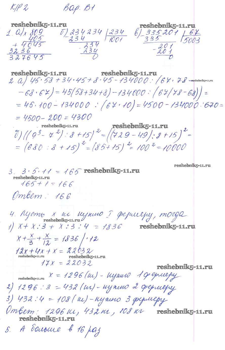 Готовая домашняя работа с ответами по Математике за 5 класс Ерина Контрольные работы УМК Экзамен 2020 ФГОС - КР-2. Варианты 5