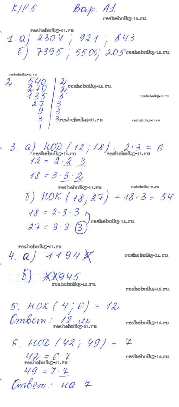Готовая домашняя работа с ответами по Математике за 5 класс Ерина Контрольные работы УМК Экзамен 2020 ФГОС - КР-5. Варианты 1