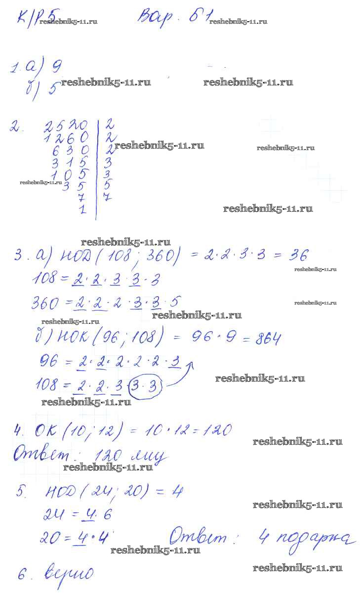 Готовая домашняя работа с ответами по Математике за 5 класс Ерина Контрольные работы УМК Экзамен 2020 ФГОС - КР-5. Варианты 3