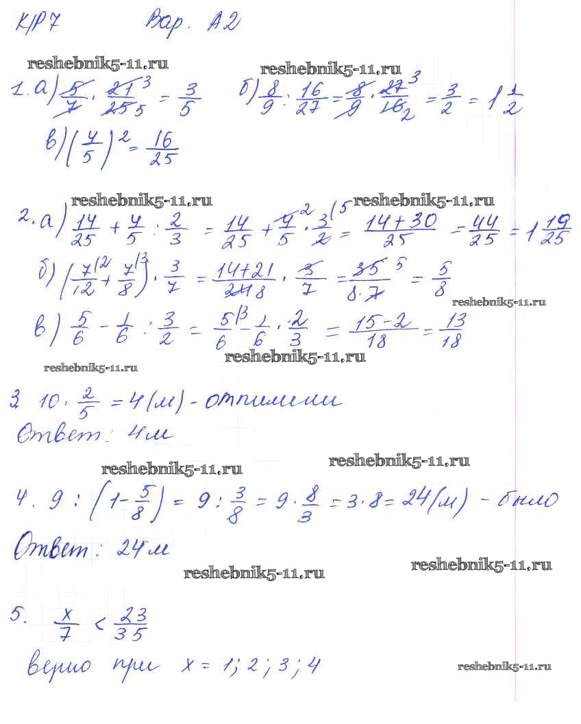 Готовая домашняя работа с ответами по Математике за 5 класс Ерина Контрольные работы УМК Экзамен 2020 ФГОС - КР-7. Варианты 2