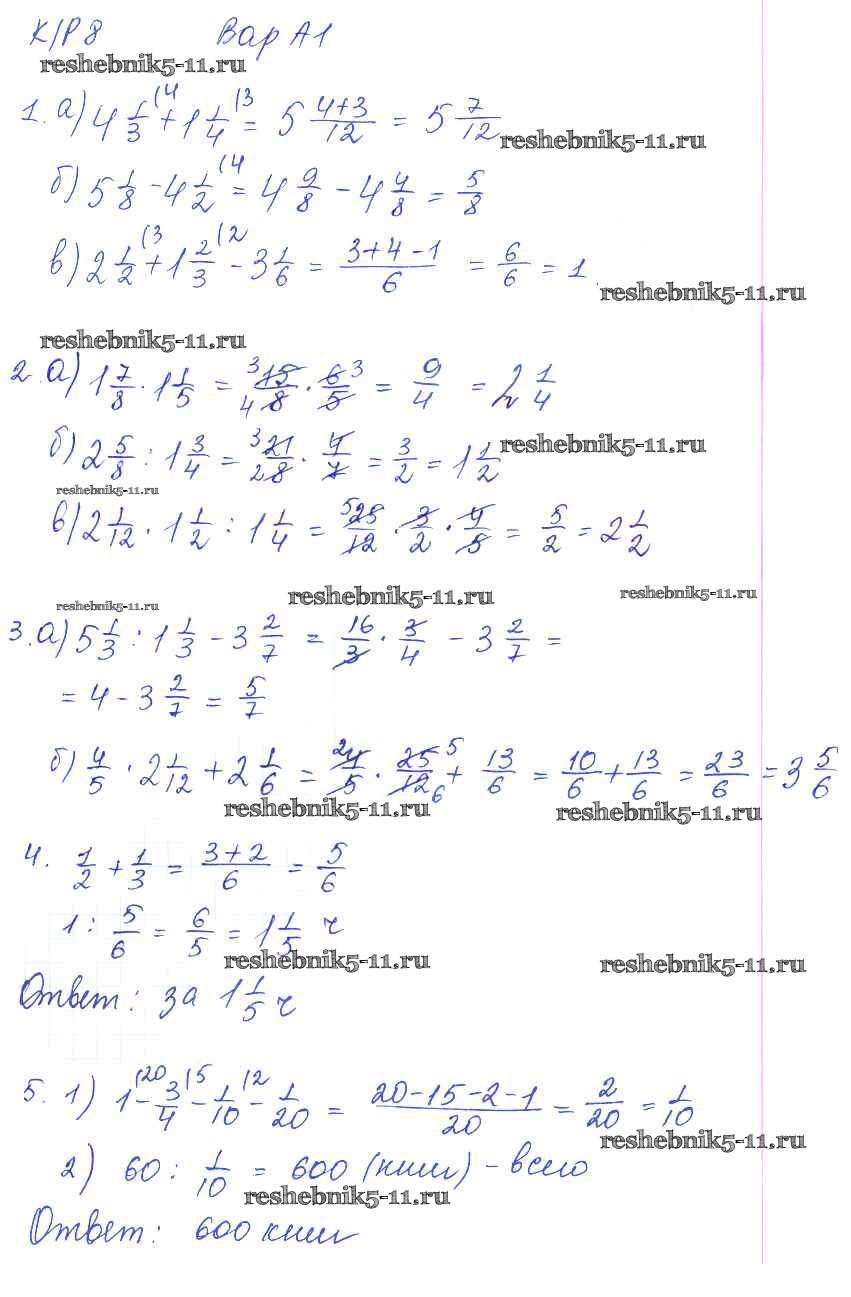 Готовая домашняя работа с ответами по Математике за 5 класс Ерина Контрольные работы УМК Экзамен 2020 ФГОС - КР-8. Варианты 1