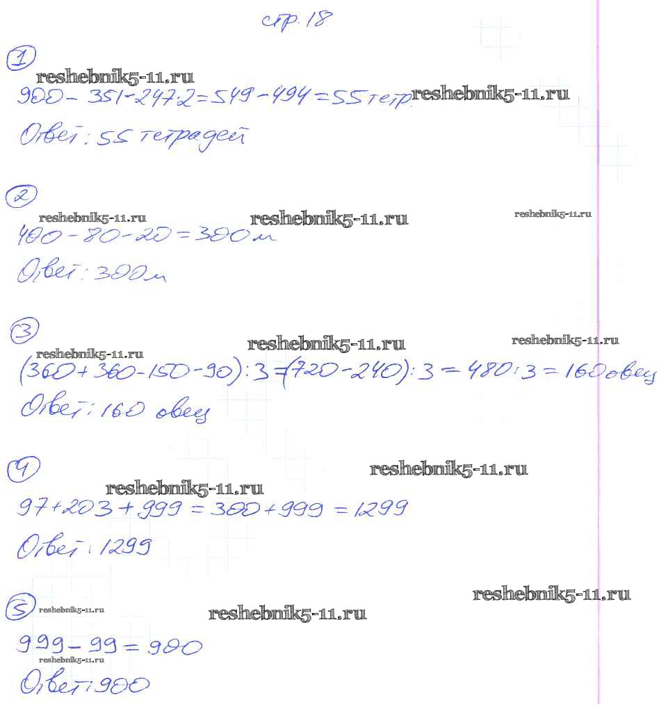 Готовая домашняя работа с ответами по Математике за 5 класс Ерина Рабочая тетрадь УМК Часть 1, 2 Экзамен 2018 ФГОС - Часть 1. Страницы 18