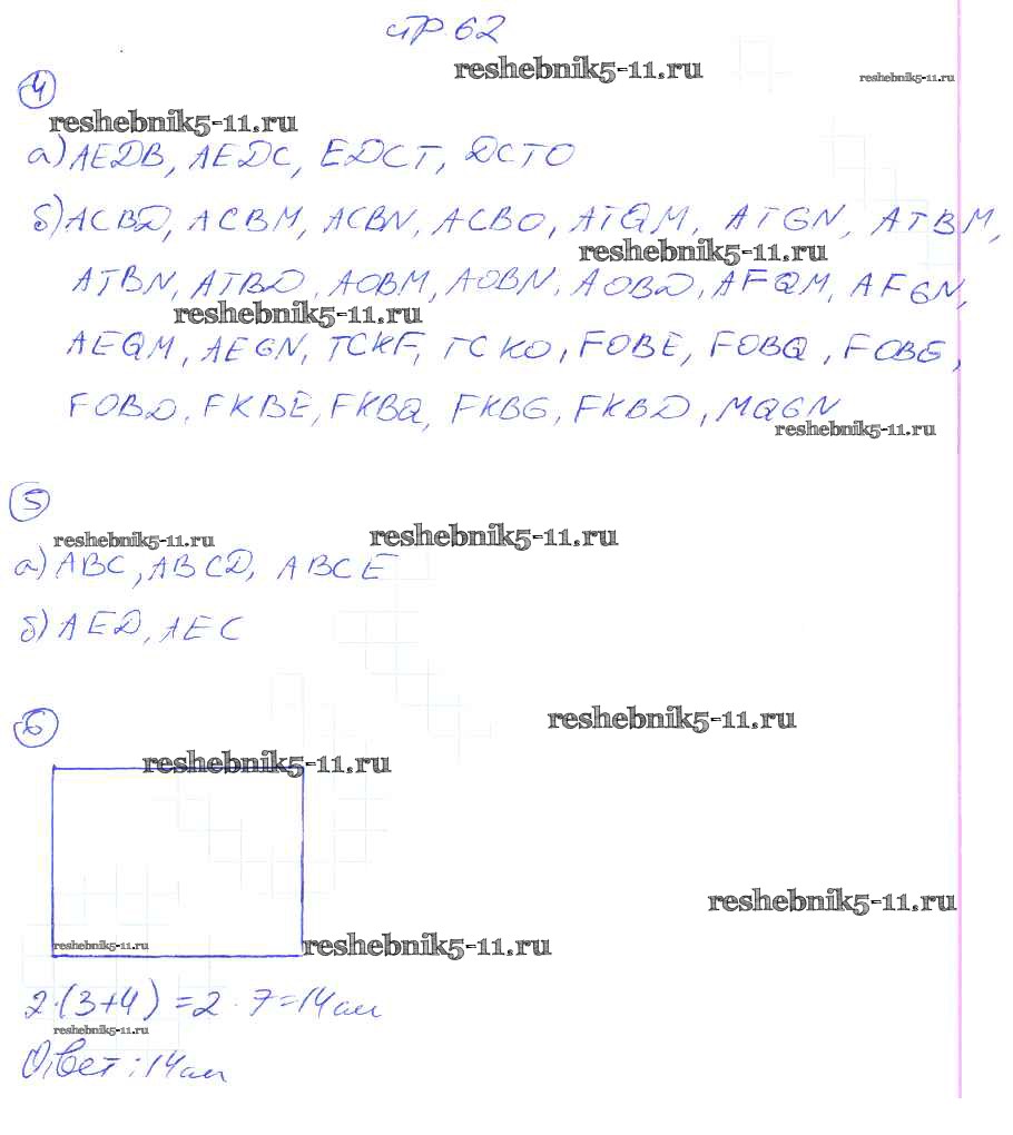 Готовая домашняя работа с ответами по Математике за 5 класс Ерина Рабочая тетрадь УМК Часть 1, 2 Экзамен 2018 ФГОС - Часть 1. Страницы 62